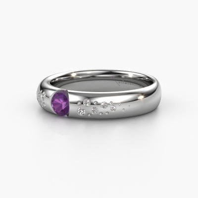 Dieser moderne Damen Ehering ist ein Schmelztiegel aus alter Handwerkskunst, Liebe, Leidenschaft und den neuesten Techniken. Es erfordert ein scharfes Auge, Geduld und eine geschickte Hand, um diesen Weißgold Ehering zu perfektionieren. Und unsere Goldschmiede streben nach Perfektion! Auf diese Weise kreieren Sie einen exklusiven Ring, der nach Ihren Wünschen angefertigt und in unserem eigenen Atelier von Hand perfektioniert wird. Dieser moderne WH2104L34A Ehering ist mit Amethyst 4 mm besetzt, ±4,5 mm breit und hat ein blinkendes Finish. Gold steht für Liebe und deshalb liebt unser Goldschmied das Design Ihre moderne Ehering. Wir sind ein stolzes Mitglied des Responsible Jewellery Council. Das heißt, wir verwenden nur ehrliches Gold. Darauf sind wir natürlich sehr stolz. Es ist auch möglich, eigenes Gold für das Design Ihre Ehering zu verwenden. Jedes Schmuckstück wird von Hand in unserem eigenen Atelier angefertigt, so dass wir diese Option anbieten können. Das gibt Ihnen die Möglichkeit, Ihrem Ring eine zusätzliche persönliche Note hinzuzufügen. Jeder Ring hat seine eigene Geschichte.Haben Sie noch spezifische Wünsche? Zum Beispiel ein glänzender oder mattierter Ring (kostenlos)? Breiter oder schmaler? Die Möglichkeiten für diesen Ehering sind unendlich. Sie können gern unsere Schmuckdesigner kontaktieren damit Sie Ihren Ring nach Ihrem Geschmack weiter anpassen können. Auch wenn Sie Ideen haben für den Entwurf von Ihre eigenen Eheringe oder einen bestimmten Ring im Laden gesehen haben, können Sie dieser immer mit unserem Designers überlegen. Unsere Designers werden gern herausgefordert genau diesen Ring zu erstellen wovon Sie Träumen!Da wir unseren eigenen Schmuckstücken entwerfen und liefern, können wir Ihnen Eheringe zu einem Preis anbieten, den Sie nirgendwo anders finden. Ihre Eheringe werden auf Bestellung angefertigt, wodurch kein überschüssiges Material anfällt. So können wir Ihnen ein gutes Angebot zum besten Preis machen.Um es einfacher zu machen, bieten wir eine kostenlose 30-tägige Rücksendung.