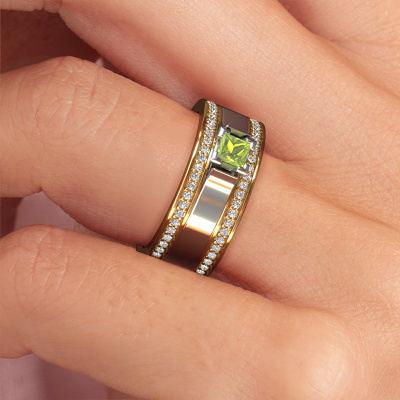 Ein wirklich stylischer, 14 Karat Gold exklusive Ehering! Dieser exquisite Damen Ehering, wie oben gezeigt, ist mit princess Peridot besetzt. Unsere Goldschmiede stellen jeden Gold Ehering in unserem eigenen Atelier her und aus diesem Grund werden die Peridot mit höchster Präzision gesetzt. Dadurch wird das Licht aus jedem Winkel gleichmäßig vom Peridot reflektiert. Die Breite dieses exklusive WH2121L Ehering beträgt ±8 mm und er hat ein blinkendes Finish. Einen Ehering wählt man nicht aus einer Laune heraus. Am Ende möchten Sie nämlich einen Ring, der vollständig Ihrem Stil und Ihren Vorlieben entspricht. Ein Spiegelbild Ihrer Liebe und Beziehung. Ein Ring, der ein Leben lang hält. Ein Symbol für alles, was Sie verbindet. Ihren Traum-Ring zu kreieren ist unsere Leidenschaft. Dies wird kunstvoll von Hand in unserem eigenen Studio gemacht, so dass wir Ihren Ring perfektionieren können. Der lohnendste Job der Welt!Haben Sie noch spezifische Wünsche? Zum Beispiel ein glänzender oder mattierter Ring (kostenlos)? Breiter oder schmaler? Die Möglichkeiten für diesen Ehering sind unendlich. Sie können gern unsere Schmuckdesigner kontaktieren damit Sie Ihren Ring nach Ihrem Geschmack weiter anpassen können. Auch wenn Sie Ideen haben für den Entwurf von Ihre eigenen Eheringe oder einen bestimmten Ring im Laden gesehen haben, können Sie dieser immer mit unserem Designers überlegen. Unsere Designers werden gern herausgefordert genau diesen Ring zu erstellen wovon Sie Träumen!Nachdem Sie Ihre Bestellung aufgegeben haben, beginnen unsere Goldschmiede mit dem kreativen Prozess der Herstellung Ihre Eheringe in unserem eigenen Studio. Wir haben keine Lager. Das ist vorteilhaft, da diese Kosten nicht an Sie weitergegeben werden. Daher sind wir in der Lage, Schmuck von höchster Qualität zu außergewöhnlich niedrigen Preisen anzubieten.Um es einfacher zu machen, bieten wir eine kostenlose 30-tägige Rücksendung.