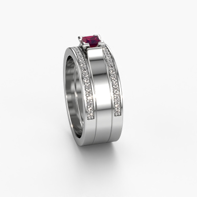 Ein wirklich stylischer, 14 Karat Weißgold exklusive Ehering! Dieser exquisite Damen Ehering, wie oben gezeigt, ist mit princess Rhodolit besetzt. Unsere Goldschmiede stellen jeden Weißgold Ehering in unserem eigenen Atelier her und aus diesem Grund werden die Rhodolit mit höchster Präzision gesetzt. Dadurch wird das Licht aus jedem Winkel gleichmäßig vom Rhodolit reflektiert. Die Breite dieses exklusive WH2121L Ehering beträgt ±8 mm und er hat ein blinkendes Finish. Einen Ehering wählt man nicht aus einer Laune heraus. Am Ende möchten Sie nämlich einen Ring, der vollständig Ihrem Stil und Ihren Vorlieben entspricht. Ein Spiegelbild Ihrer Liebe und Beziehung. Ein Ring, der ein Leben lang hält. Ein Symbol für alles, was Sie verbindet. Ihren Traum-Ring zu kreieren ist unsere Leidenschaft. Dies wird kunstvoll von Hand in unserem eigenen Studio gemacht, so dass wir Ihren Ring perfektionieren können. Der lohnendste Job der Welt!Haben Sie noch spezifische Wünsche? Zum Beispiel ein glänzender oder mattierter Ring (kostenlos)? Breiter oder schmaler? Die Möglichkeiten für diesen Ehering sind unendlich. Sie können gern unsere Schmuckdesigner kontaktieren damit Sie Ihren Ring nach Ihrem Geschmack weiter anpassen können. Auch wenn Sie Ideen haben für den Entwurf von Ihre eigenen Eheringe oder einen bestimmten Ring im Laden gesehen haben, können Sie dieser immer mit unserem Designers überlegen. Unsere Designers werden gern herausgefordert genau diesen Ring zu erstellen wovon Sie Träumen!Nachdem Sie Ihre Bestellung aufgegeben haben, beginnen unsere Goldschmiede mit dem kreativen Prozess der Herstellung Ihre Eheringe in unserem eigenen Studio. Wir haben keine Lager. Das ist vorteilhaft, da diese Kosten nicht an Sie weitergegeben werden. Daher sind wir in der Lage, Schmuck von höchster Qualität zu außergewöhnlich niedrigen Preisen anzubieten.Um es einfacher zu machen, bieten wir eine kostenlose 30-tägige Rücksendung.