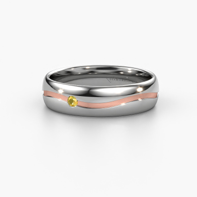Was für eine perfekte Kombination zwei verschiedener Edelmetalle. Sie scheinen sich im moderne Design dieses Rings zu verstärken! Unser Goldschiede würde sich freuen, einen einzigartigen Ring für Sie zu kreieren, ganz nach Ihren Wünschen. Jeder Ring, den wir anbieten, wird kunstvoll von Hand in unserem eigenen Atelier angefertigt. Das macht es möglich, dass wir Ihre Modern in die Realität umsetzen und Ihnen dabei helfen, Ihren eigenen, persönlichen Ring zu kreieren, der an Ihren Stil angepasst ist. Dieser moderne Weißgold WH0905L35X Damen Ehering ist mit rund Gelb Saphir besetzt, ±5 mm breit und hat ein blinkendes Finish.