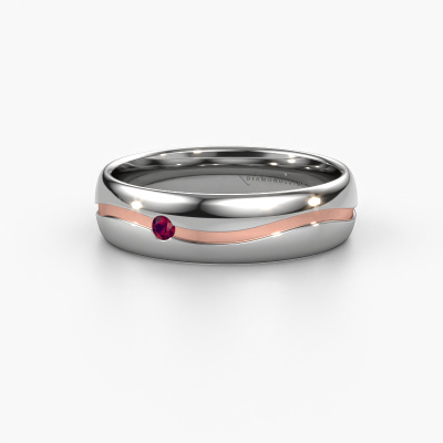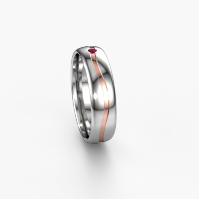 Was für eine perfekte Kombination zwei verschiedener Edelmetalle. Sie scheinen sich im moderne Design dieses Rings zu verstärken! Unser Goldschiede würde sich freuen, einen einzigartigen Ring für Sie zu kreieren, ganz nach Ihren Wünschen. Jeder Ring, den wir anbieten, wird kunstvoll von Hand in unserem eigenen Atelier angefertigt. Das macht es möglich, dass wir Ihre Modern in die Realität umsetzen und Ihnen dabei helfen, Ihren eigenen, persönlichen Ring zu kreieren, der an Ihren Stil angepasst ist. Dieser moderne Weißgold WH0905L35X Damen Ehering ist mit rund Rhodolit besetzt, ±5 mm breit und hat ein blinkendes Finish.