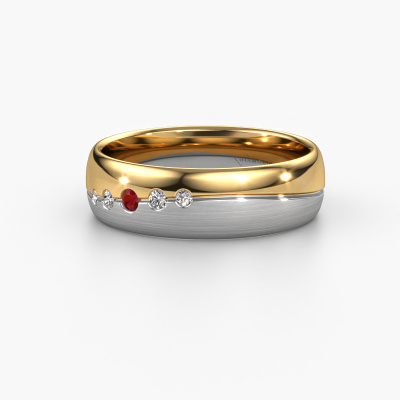 Was für eine perfekte Kombination zwei verschiedener Edelmetalle. Sie scheinen sich im Luxus Design dieses Rings zu verstärken! Unser Goldschiede würde sich freuen, einen einzigartigen Ring für Sie zu kreieren, ganz nach Ihren Wünschen. Jeder Ring, den wir anbieten, wird kunstvoll von Hand in unserem eigenen Atelier angefertigt. Das macht es möglich, dass wir Ihre Luxus in die Realität umsetzen und Ihnen dabei helfen, Ihren eigenen, persönlichen Ring zu kreieren, der an Ihren Stil angepasst ist. Dieser Luxus Gold WH0925L36APM Damen Ehering ist mit rund Rubin besetzt, ±6 mm breit und hat ein mattiert-glänzende Finish. Sie können in unserem Online-Tool eine Kombination aus Edelmetallen wählen. Alles ist möglich! Es ist gut, sich die Eigenschaften der verschiedenen Edelmetalle anzusehen. Gold und Silber sind zum Beispiel weichere Metalle. Die Karat werden durch die Menge der hinzugefügten zusätzlichen Metalle bestimmt. Wenn der Goldschmied nicht viel hinzufügt, sind die Karat höher und der Ehering wird weicher. Wenn er mehr Metalle hinzufügt, hat das Schmuckstück einen geringeren Wert in Karat. Ein weicheres Edelmetall kann trotzdem für Ihre Luxus Ehering verwendet werden! Wenn Sie ein Edelmetall bevorzugen, das ein Leben lang halten wird, empfehlen wir Platin. Es ist das robusteste und langlebigste Metall, dass unser Goldschmied verwendet.Dieser Ehering kann auch als Inspirationsquelle dienen. Möchtest du den Ring matt oder glänzend (ohne Aufpreis) haben, oder lieber breiter oder schmaler? Alles ist möglich. Da es unzählige Variationen gibt, können wir nicht alles auf unserer Website zeigen. Hast du eine Idee für schöne Eheringe oder irgendwo anders ein schönes Set Trauringe gesehen? Kontaktiere uns gerne, unsere Designer stehen bereit, um dir zu helfen.Da wir unsere eigenen Ringe entwerfen und liefern, können wir Ihre Eheringe zu einem Preis anbieten, den Sie nirgendwo anders finden. Ein Ring wird auf Bestellung angefertigt, wodurch kein überschüssiges Material anfällt. So können wir Ihnen ein gutes Angebot zum besten Preis machen.Um es einfacher zu machen, bieten wir eine kostenlose 30-tägige Rücksendung.