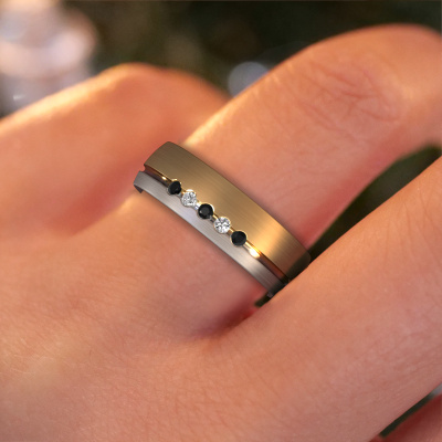 Was für eine perfekte Kombination zwei verschiedener Edelmetalle. Sie scheinen sich im traditionell Design dieses Rings zu verstärken! Unser Goldschiede würde sich freuen, einen einzigartigen Ring für Sie zu kreieren, ganz nach Ihren Wünschen. Jeder Ring, den wir anbieten, wird kunstvoll von Hand in unserem eigenen Atelier angefertigt. Das macht es möglich, dass wir Ihre Traditionell in die Realität umsetzen und Ihnen dabei helfen, Ihren eigenen, persönlichen Ring zu kreieren, der an Ihren Stil angepasst ist. Dieser traditionell Gold WH0323L25AM Damen Ehering ist mit rund Schwarz Diamant besetzt, ±6 mm breit und hat ein mattes Finish. Passen Sie einfach Ihre Edelsteine und Farben mit unserem Online-Tool an. Unsere Schmuckdesigner erstellen eine 3D-Zeichnung Ihres Designs, damit Sie das Endergebnis sehen können. Unsere Goldschmiede werden anschließend Ihre Ehering nach alter Handwerkskunst von Hand anfertigen. Unser Ziel ist es, den Ehering Ihre Träume anzufertigen. Ein einzigartiger Ehering, der perfekt zu Ihrem Stil passt!Haben Sie noch andere Wünsche für Ihre Ehering und können Sie dieser hier nicht zurückfinden? Bitte kontaktieren Sie unsere Schmuckdesigners! Wir können zum Beispiel einen Ring mattieren und den Ring breiter oder schmaler für Sie machen. Und haben Sie selbst einen Vorschlag für einen traditionell Eheringe? Unsere Designers werden gern herausgefordert, um Ihrem Ring zu Ihren Vorstellungen zu gestalten!Mit unserer modernen Technik, kombiniert mit Handwerk, können wir Schmuckstücke von höchster Qualität mit größter Sorgfalt für Sie entwerfen und anpassen. Unsere Eheringe sind immer um 30 Prozent günstiger als bei anderen Juwelieren. Wir fertigen Eheringe auf Bestellung, also müssen wir keine großen Lager unterhalten.Um es einfacher zu machen, bieten wir eine kostenlose 30-tägige Rücksendung.