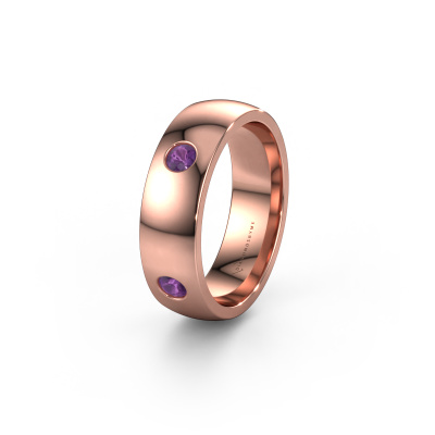 Ein wirklich stylischer, 14 Karat Roségold exklusive Ehering! Dieser exquisite Damen Ehering, wie oben gezeigt, ist mit rund Amethyst besetzt. Unsere Goldschmiede stellen jeden Roségold Ehering in unserem eigenen Atelier her und aus diesem Grund werden die Amethysten mit höchster Präzision gesetzt. Dadurch wird das Licht aus jedem Winkel gleichmäßig vom Amethysten reflektiert. Die Breite dieses exklusive WH0104L26BP Ehering beträgt ±6 mm und er hat ein blinkendes Finish. Gold steht für Liebe und deshalb liebt unser Goldschmied das Design Ihre exklusive Ehering. Wir sind ein stolzes Mitglied des Responsible Jewellery Council. Das heißt, wir verwenden nur ehrliches Gold. Darauf sind wir natürlich sehr stolz. Es ist auch möglich, eigenes Gold für das Design Ihre Ehering zu verwenden. Jedes Schmuckstück wird von Hand in unserem eigenen Atelier angefertigt, so dass wir diese Option anbieten können. Das gibt Ihnen die Möglichkeit, Ihrem Ring eine zusätzliche persönliche Note hinzuzufügen. Jeder Ring hat seine eigene Geschichte.Sie können sich übrigens auch inspirieren lassen von diesem Eheringe und den Ringen weiter nach Ihrem Geschmack anpassen. Möchten Sie zum Beispiel lieber einen breiteren oder schmaleren Ring oder einen mattierten oder glänzenden Ring? Alles ist möglich. Auch wenn Sie selbst eine Idee haben für einzigartigen Eheringe, oder vielleicht haben Sie selbst irgendwo sonst einen schönen Set Eheringen gefunden: kein Problem! Sie können uns gern anrufen, unsere Designer besprechen gern alle Möglichkeiten mit Ihnen!Da wir unseren eigenen Schmuckstücken entwerfen und liefern, können wir Ihnen Eheringe zu einem Preis anbieten, den Sie nirgendwo anders finden. Ihre Eheringe werden auf Bestellung angefertigt, wodurch kein überschüssiges Material anfällt. So können wir Ihnen ein gutes Angebot zum besten Preis machen.Um es einfacher zu machen, bieten wir eine kostenlose 30-tägige Rücksendung.