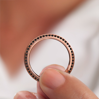 Wenn Sie nach einem exklusiven, exklusive Ehering mit einem exquisiten Look suchen, ist dieser Ring perfekt für Sie. Weil er an Ihren Stil angepasst werden kann, wird dieser Ehering zu einem einzigartigen, exklusiven Schmuckstück verarbeitet. Dieser exklusive Damen Ehering ist eine perfekte Kombination aus alter Handwerkskunst, Liebe, Leidenschaft und modernsten Techniken. Dieser exklusive WH2106L14C Roségold Ehering ist mit Schwarz Diamant 0.40 crt besetzt, ±4 mm breit und hat ein blinkendes Finish. Passen Sie einfach Ihre Edelsteine und Farben mit unserem Online-Tool an. Unsere Schmuckdesigner erstellen eine 3D-Zeichnung Ihres Designs, damit Sie das Endergebnis sehen können. Unsere Goldschmiede werden anschließend Ihre Ehering nach alter Handwerkskunst von Hand anfertigen. Unser Ziel ist es, den Ehering Ihre Träume anzufertigen. Ein einzigartiger Ehering, der perfekt zu Ihrem Stil passt!Sie können sich übrigens auch inspirieren lassen von diesem Eheringe und den Ringen weiter nach Ihrem Geschmack anpassen. Möchten Sie zum Beispiel lieber einen breiteren oder schmaleren Ring oder einen mattierten oder glänzenden Ring? Alles ist möglich. Auch wenn Sie selbst eine Idee haben für einzigartigen Eheringe, oder vielleicht haben Sie selbst irgendwo sonst einen schönen Set Eheringen gefunden: kein Problem! Sie können uns gern anrufen, unsere Designer besprechen gern alle Möglichkeiten mit Ihnen!Da wir unseren eigenen Schmuckstücken entwerfen und liefern, können wir Ihnen Eheringe zu einem Preis anbieten, den Sie nirgendwo anders finden. Ihre Eheringe werden auf Bestellung angefertigt, wodurch kein überschüssiges Material anfällt. So können wir Ihnen ein gutes Angebot zum besten Preis machen.Um es einfacher zu machen, bieten wir eine kostenlose 30-tägige Rücksendung.