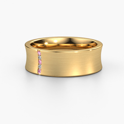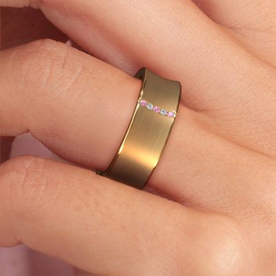 Eine außergewöhnlicher besondere Ehering! So einzigartig wie Ihre Beziehung! Kein Mensch ist wie der andere und deshalb wollen Sie auch einzigartige Ehering. Dieser moderne Damen WH2021B Ehering wird von unseren Schmuckdesignern angefertigt und von unserem Goldschiede in Handarbeit gefertigt. In diesem Verfahren verwenden wir pure Handwerkskunst in Kombination mit den neuesten Techniken, um das beste Ergebnis zu erzielen. Unser Goldschiede strebt nach absoluter Perfektion. Ein einzigartiger, handgefertigter Ehering zum Gedenken an Ihren großen Tag! Dieser moderne WH2021B Gold Ehering ist mit Pink Saphir besetzt, ±7 mm breit und hat ein mattiert-glänzende Finish. Gold steht für Liebe und deshalb liebt unser Goldschmied das Design Ihre moderne Ehering. Wir sind ein stolzes Mitglied des Responsible Jewellery Council. Das heißt, wir verwenden nur ehrliches Gold. Darauf sind wir natürlich sehr stolz. Es ist auch möglich, eigenes Gold für das Design Ihre Ehering zu verwenden. Jedes Schmuckstück wird von Hand in unserem eigenen Atelier angefertigt, so dass wir diese Option anbieten können. Das gibt Ihnen die Möglichkeit, Ihrem Ring eine zusätzliche persönliche Note hinzuzufügen. Jeder Ring hat seine eigene Geschichte.Haben Sie noch weitere Wünschen für Ihre Ehering? Zum Beispiel ein schmälerer oder breitere Ring? Oder gerade glänzend oder mattiert? Es gibt noch unendliche andere Variationen. Sie können diese immer mit unseren Schmuckdesigners besprechen. Auch wenn Sie selbst ein Design im Kopf haben, helfen unsere Designers Ihnen gern weiter um Ihre Eheringe weiter zu zeichnen bis dieser komplett nach Ihrem Geschmack ist. Sie können uns gern kontaktieren!Da wir unsere eigenen Ringe entwerfen und liefern, können wir Ihre Eheringe zu einem Preis anbieten, den Sie nirgendwo anders finden. Ein Ring wird auf Bestellung angefertigt, wodurch kein überschüssiges Material anfällt. So können wir Ihnen ein gutes Angebot zum besten Preis machen.Um es einfacher zu machen, bieten wir eine kostenlose 30-tägige Rücksendung.