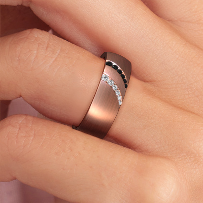 Um Ihren Damen Ehering in unserem Atelier anzufertigen, verwenden wir modernste Techniken, kombiniert mit alter Handwerkskunst. Das Endergebnis ist dieser moderne WH2015L Ehering, der von unseren Goldschmieden in Handarbeit gefertigt wird. Ein Ring, der uns mit Stolz erfüllt. Dieser Roségold WH2015L Damen Ehering mit flach-gewölbt Profil hat eine Breite von ±6,5 mm und ein mattes Finish mit Schwarz Diamant. Sie können in unserem Online-Tool eine Kombination aus Edelmetallen wählen. Alles ist möglich! Es ist gut, sich die Eigenschaften der verschiedenen Edelmetalle anzusehen. Gold und Silber sind zum Beispiel weichere Metalle. Die Karat werden durch die Menge der hinzugefügten zusätzlichen Metalle bestimmt. Wenn der Goldschmied nicht viel hinzufügt, sind die Karat höher und der Ehering wird weicher. Wenn er mehr Metalle hinzufügt, hat das Schmuckstück einen geringeren Wert in Karat. Ein weicheres Edelmetall kann trotzdem für Ihre moderne Ehering verwendet werden! Wenn Sie ein Edelmetall bevorzugen, das ein Leben lang halten wird, empfehlen wir Platin. Es ist das robusteste und langlebigste Metall, dass unser Goldschmied verwendet.Haben Sie noch andere Wünsche für Ihre Ehering und können Sie dieser hier nicht zurückfinden? Bitte kontaktieren Sie unsere Schmuckdesigners! Wir können zum Beispiel einen Ring mattieren und den Ring breiter oder schmaler für Sie machen. Und haben Sie selbst einen Vorschlag für einen moderne Eheringe? Unsere Designers werden gern herausgefordert, um Ihrem Ring zu Ihren Vorstellungen zu gestalten!Nach Erhalt Ihrer Bestellung beginnen unsere Goldschmiede mit Leidenschaft den kreativen Prozess und fertigen Ihre Eheringe in unserem eigenen Studio. Da wir keine großen Lager haben, werden diese Kosten nicht an Sie weitergegeben. Unsere Preisgestaltung ist der Beweis dafür! Wir bieten Schmuck zum niedrigsten Preis, garantiert.Um es einfacher zu machen, bieten wir eine kostenlose 30-tägige Rücksendung.