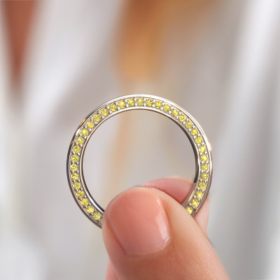Der exklusive Eternity Ehering ist ein Ring mit einer schönen, symbolischen Bedeutung. Weil es keinen Anfang und kein Ende der Linie kleinerer Gelb Saphir zu geben scheint. Eine schöne Art, um Ihre ewige Liebe auszudrücken. Ein Ring, der bis zum Ende aller Zeiten getragen wird, als Symbol für Ihre Vereinigung. Dieser Welle Details WH2027BM Damen Weißgold Ehering hat eine Breite von ±5 mm und ist mit Gelb Saphir 1.2 mm besetzt. Einen Ehering wählt man nicht aus einer Laune heraus. Am Ende möchten Sie nämlich einen Ring, der vollständig Ihrem Stil und Ihren Vorlieben entspricht. Ein Spiegelbild Ihrer Liebe und Beziehung. Ein Ring, der ein Leben lang hält. Ein Symbol für alles, was Sie verbindet. Ihren Traum-Ring zu kreieren ist unsere Leidenschaft. Dies wird kunstvoll von Hand in unserem eigenen Studio gemacht, so dass wir Ihren Ring perfektionieren können. Der lohnendste Job der Welt!Haben Sie noch andere Wünsche für Ihre Ehering und können Sie dieser hier nicht zurückfinden? Bitte kontaktieren Sie unsere Schmuckdesigners! Wir können zum Beispiel einen Ring mattieren und den Ring breiter oder schmaler für Sie machen. Und haben Sie selbst einen Vorschlag für einen exklusive Eheringe? Unsere Designers werden gern herausgefordert, um Ihrem Ring zu Ihren Vorstellungen zu gestalten!Mit unserer modernen Technik, kombiniert mit Handwerk, können wir Schmuckstücke von höchster Qualität mit größter Sorgfalt für Sie entwerfen und anpassen. Unsere Eheringe sind immer um 30 Prozent günstiger als bei anderen Juwelieren. Wir fertigen Eheringe auf Bestellung, also müssen wir keine großen Lager unterhalten.Um es einfacher zu machen, bieten wir eine kostenlose 30-tägige Rücksendung.