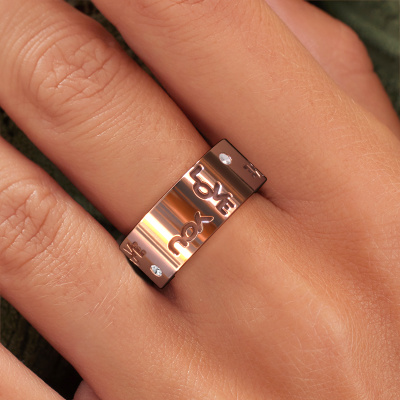 Ein einzigartiger Ehering! Was diesen Namering 5 Damen Ehering so besonders macht ist, dass er mit einem speziellen Text graviert werden kann, der für Sie von Bedeutung ist. Ein Wort, ein kurzer Satz, oder der Teil eines Liedtextes. Welcher Text auch immer für Sie am wichtigsten ist. Erinnern Sie sich daran mit einer exquisiten Gravur in diesem Fantasie Ehering. Dieser eigenem Text Roségold Damen Ehering hat eine Breite von ±8 mm.