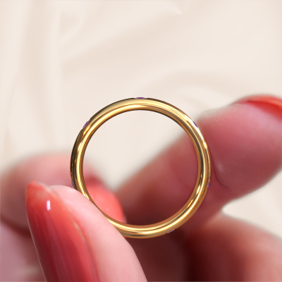 Um Ihren Damen Ehering in unserem Atelier anzufertigen, verwenden wir modernste Techniken, kombiniert mit alter Handwerkskunst. Das Endergebnis ist dieser moderne WH0105L34BP Ehering, der von unseren Goldschmieden in Handarbeit gefertigt wird. Ein Ring, der uns mit Stolz erfüllt. Dieser Gold WH0105L34BP Damen Ehering mit flach-gewölbt Profil hat eine Breite von ±4 mm und ein blinkendes Finish mit Amethyst.