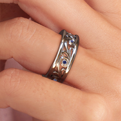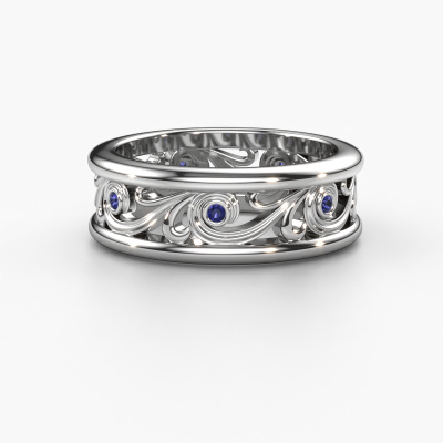 Wie gefällt Ihnen dieser schöne Vintage Weißgold Damen Ehering? Ein neues Design, basierend auf alten, klassischen Mustern. Wussten Sie, dass er an Ihren Stil angepasst werden kann? Unser Goldschiede arbeitet nach alter Handwerkskunst und würde sich geehrt fühlen, Ihr Ehering nach Ihren Wünschen mit höchster Präzision anzufertigen. Dieser 14 Karat Vintage Bibi Ehering ist mit Saphir besetzt, ±7 mm breit und hat ein blinkendes Finish.
