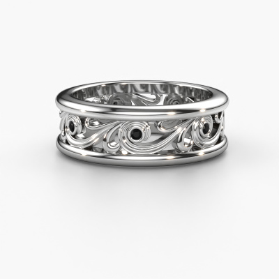 Wie gefällt Ihnen dieser schöne Vintage Weißgold Damen Ehering? Ein neues Design, basierend auf alten, klassischen Mustern. Wussten Sie, dass er an Ihren Stil angepasst werden kann? Unser Goldschiede arbeitet nach alter Handwerkskunst und würde sich geehrt fühlen, Ihr Ehering nach Ihren Wünschen mit höchster Präzision anzufertigen. Dieser 14 Karat Vintage Bibi Ehering ist mit Schwarz Diamant besetzt, ±7 mm breit und hat ein blinkendes Finish.