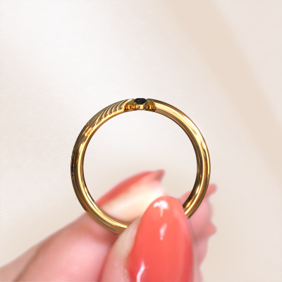 Was könnte einzigartiger sein als ein Fingerabdruck? Das macht diesen Damen Ehering mit Schwarz Diamant so besonders. Ein persönlicher Fingerabdruck Ihres geliebten Menschen, in das Symbol Ihrer ewigen Liebe eingraviert. Wäre es nicht schön, diesen moderne Ehering an Ihrem Hochzeitstag auf den Finger Ihres Partners zu schieben? Wie funktioniert das? Zuerst bestellen Sie den Ehering, nachdem Sie ihn nach Ihren Wünschen angepasst haben. Sobald Ihre Bestellung aufgegeben wurde, senden Sie uns eine E-Mail mit dem von Ihnen gewünschten Fingerabdruck. Werfen Sie einen Blick in unsere Datenbank am unteren Rand dieser Seite, um weitere Anweisungen zum Erstellen eines Fingerabdrucks zu erhalten. Dieser Gold Leonila Ehering hat eine Breite von ±5,5 mm. Wählen Sie Ihre eigenen Edelsteine, um Ihre Liebe zu repräsentieren. Wir bieten eine Vielzahl an exquisiten Edelsteinen, die unser Goldschmied in Ihre Ehering einfasst. So bekommen Sie am Ende einen einzigartigen Ehering. Einen, der perfekt zu Ihnen passt. Sehen Sie sich einfach die oben genannten Optionen an und passen Sie Ihre Ehering sofort an.Dieser Ehering kann auch als Inspirationsquelle dienen. Möchtest du den Ring matt oder glänzend (ohne Aufpreis) haben, oder lieber breiter oder schmaler? Alles ist möglich. Da es unzählige Variationen gibt, können wir nicht alles auf unserer Website zeigen. Hast du eine Idee für schöne Eheringe oder irgendwo anders ein schönes Set Trauringe gesehen? Kontaktiere uns gerne, unsere Designer stehen bereit, um dir zu helfen.Nach Erhalt Ihrer Bestellung beginnen unsere Goldschmiede mit Leidenschaft den kreativen Prozess und fertigen Ihre Eheringe in unserem eigenen Studio. Da wir keine großen Lager haben, werden diese Kosten nicht an Sie weitergegeben. Unsere Preisgestaltung ist der Beweis dafür! Wir bieten Schmuck zum niedrigsten Preis, garantiert.Um es einfacher zu machen, bieten wir eine kostenlose 30-tägige Rücksendung.