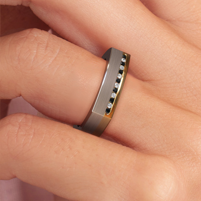 Eine außergewöhnlicher rechteckige Ehering! So einzigartig wie Ihre Beziehung! Kein Mensch ist wie der andere und deshalb wollen Sie auch einzigartige Ehering. Dieser einzigartige Damen WH2005L Ehering wird von unseren Schmuckdesignern angefertigt und von unserem Goldschiede in Handarbeit gefertigt. In diesem Verfahren verwenden wir pure Handwerkskunst in Kombination mit den neuesten Techniken, um das beste Ergebnis zu erzielen. Unser Goldschiede strebt nach absoluter Perfektion. Ein einzigartiger, handgefertigter Ehering zum Gedenken an Ihren großen Tag! Dieser einzigartige WH2005L Gold Ehering ist mit Schwarz Diamant besetzt, ±5 mm breit und hat ein mattiert-glänzende Finish. Einen Ehering wählt man nicht aus einer Laune heraus. Am Ende möchten Sie nämlich einen Ring, der vollständig Ihrem Stil und Ihren Vorlieben entspricht. Ein Spiegelbild Ihrer Liebe und Beziehung. Ein Ring, der ein Leben lang hält. Ein Symbol für alles, was Sie verbindet. Ihren Traum-Ring zu kreieren ist unsere Leidenschaft. Dies wird kunstvoll von Hand in unserem eigenen Studio gemacht, so dass wir Ihren Ring perfektionieren können. Der lohnendste Job der Welt!Haben Sie noch spezifische Wünsche? Zum Beispiel ein glänzender oder mattierter Ring (kostenlos)? Breiter oder schmaler? Die Möglichkeiten für diesen Ehering sind unendlich. Sie können gern unsere Schmuckdesigner kontaktieren damit Sie Ihren Ring nach Ihrem Geschmack weiter anpassen können. Auch wenn Sie Ideen haben für den Entwurf von Ihre eigenen Eheringe oder einen bestimmten Ring im Laden gesehen haben, können Sie dieser immer mit unserem Designers überlegen. Unsere Designers werden gern herausgefordert genau diesen Ring zu erstellen wovon Sie Träumen!Nachdem Sie Ihre Bestellung aufgegeben haben, beginnen unsere Goldschmiede mit dem kreativen Prozess der Herstellung Ihre Eheringe in unserem eigenen Studio. Wir haben keine Lager. Das ist vorteilhaft, da diese Kosten nicht an Sie weitergegeben werden. Daher sind wir in der Lage, Schmuck von höchster Qualität zu außergewöhnlich niedrigen Preisen anzubieten.Um es einfacher zu machen, bieten wir eine kostenlose 30-tägige Rücksendung.