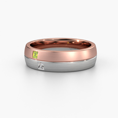 Ein einzigartiger Roségold tricolor Damen Trauring, von Ihnen entworfen und kunstvoll von unserem Goldschiede in unserem eigenen Atelier angefertigt! Ein schönes Symbol, das Ihre Liebe widerspiegelt und das Sie ein Leben lang mit sich tragen! Jeder Ring, den wir anbieten, wird kunstvoll von Hand in unserem eigenen Handwerksbetrieb geschmiedet. Das ermöglicht es uns, einen Ring für Sie zu kreieren, der ganz nach Ihrem Geschmack angepasst ist und Ihrem Stil entspricht. Dieser moderne WH0250L26BM Trauring ist mit princess Peridot besetzt, ±6 mm breit und hat ein mattes Finish. Der oben abgebildete, massive Ring ist ein Trauring mit glatter Oberfläche. Wählen Sie einfach ein Edelmetall, das zu Ihrem Stil passt. Ehrliches Platin, Gold oder Silber. Wir können Ihnen einen Ring anbieten, der vollkommen atemberaubend ist. Es ist auch möglich, dass unser Goldschmied Ihr eigenes Gold für Ihre Trauring verwendet.Sie können sich übrigens auch inspirieren lassen von diesem Trauringe und den Ringen weiter nach Ihrem Geschmack anpassen. Möchten Sie zum Beispiel lieber einen breiteren oder schmaleren Ring oder einen mattierten oder glänzenden Ring? Alles ist möglich. Auch wenn Sie selbst eine Idee haben für einzigartigen Trauringe, oder vielleicht haben Sie selbst irgendwo sonst einen schönen Set Eheringen gefunden: kein Problem! Sie können uns gern anrufen, unsere Designer besprechen gern alle Möglichkeiten mit Ihnen!Da wir unseren eigenen Schmuckstücken entwerfen und liefern, können wir Ihnen Trauringe zu einem Preis anbieten, den Sie nirgendwo anders finden. Ihre Trauringe werden auf Bestellung angefertigt, wodurch kein überschüssiges Material anfällt. So können wir Ihnen ein gutes Angebot zum besten Preis machen.Um es einfacher zu machen, bieten wir eine kostenlose 30-tägige Rücksendung.