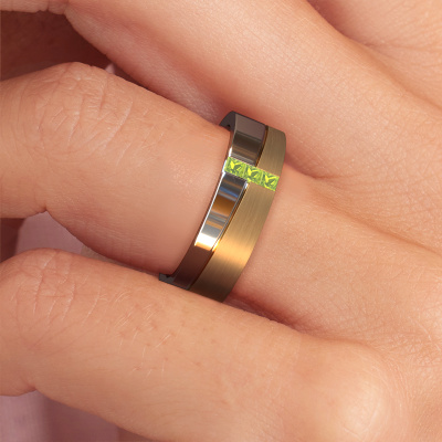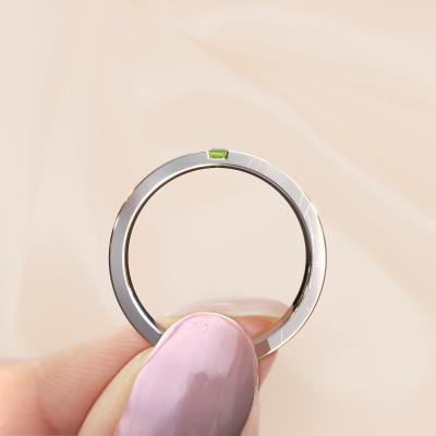 Ein einzigartiger Weißgold tricolor Damen Trauring, von Ihnen entworfen und kunstvoll von unserem Goldschiede in unserem eigenen Atelier angefertigt! Ein schönes Symbol, das Ihre Liebe widerspiegelt und das Sie ein Leben lang mit sich tragen! Jeder Ring, den wir anbieten, wird kunstvoll von Hand in unserem eigenen Handwerksbetrieb geschmiedet. Das ermöglicht es uns, einen Ring für Sie zu kreieren, der ganz nach Ihrem Geschmack angepasst ist und Ihrem Stil entspricht. Dieser moderne WH0906L16A Trauring ist mit princess Peridot besetzt, ±6 mm breit und hat ein mattiert-glänzende Finish. Sie können in unserem Online-Tool eine Kombination aus Edelmetallen wählen. Alles ist möglich! Es ist gut, sich die Eigenschaften der verschiedenen Edelmetalle anzusehen. Gold und Silber sind zum Beispiel weichere Metalle. Die Karat werden durch die Menge der hinzugefügten zusätzlichen Metalle bestimmt. Wenn der Goldschmied nicht viel hinzufügt, sind die Karat höher und der Trauring wird weicher. Wenn er mehr Metalle hinzufügt, hat das Schmuckstück einen geringeren Wert in Karat. Ein weicheres Edelmetall kann trotzdem für Ihre moderne Trauring verwendet werden! Wenn Sie ein Edelmetall bevorzugen, das ein Leben lang halten wird, empfehlen wir Platin. Es ist das robusteste und langlebigste Metall, dass unser Goldschmied verwendet.Haben Sie noch weitere Wünschen für Ihre Trauring? Zum Beispiel ein schmälerer oder breitere Ring? Oder gerade glänzend oder mattiert? Es gibt noch unendliche andere Variationen. Sie können diese immer mit unseren Schmuckdesigners besprechen. Auch wenn Sie selbst ein Design im Kopf haben, helfen unsere Designers Ihnen gern weiter um Ihre Trauringe weiter zu zeichnen bis dieser komplett nach Ihrem Geschmack ist. Sie können uns gern kontaktieren!Nachdem Sie Ihre Bestellung aufgegeben haben, beginnen unsere Goldschmiede mit dem kreativen Prozess der Herstellung Ihre Trauringe. Wir haben keine Lager. Das ist vorteilhaft, da diese Kosten nicht an Sie weitergegeben werden. Daher sind wir in der Lage, Schmuck zu außergewöhnlich niedrigen Preisen anzubieten.Um es einfacher zu machen, bieten wir eine kostenlose 30-tägige Rücksendung.
