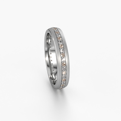 Wussten Sie, dass der Eternity Ehering nicht nur gut aussieht, sondern dass dieser Ehering auch seine eigene symbolische Bedeutung hat? Der Eternity Ehering im Platin, mit perfekt umgebenden kleineren Edelsteine, repräsentiert Ihre ewige Liebe. Da der Ring mit Edelsteinen umgeben ist, scheint er weder Anfang noch Ende zu haben. Schön, finden Sie nicht auch? Dieser Pavé WH0103L24BM Damen Ehering hat eine Breite von ±4 mm und ist mit 0.44 crt Braun Diamant besetzt. Sie können in unserem Online-Tool eine Kombination aus Edelmetallen wählen. Alles ist möglich! Es ist gut, sich die Eigenschaften der verschiedenen Edelmetalle anzusehen. Gold und Silber sind zum Beispiel weichere Metalle. Die Karat werden durch die Menge der hinzugefügten zusätzlichen Metalle bestimmt. Wenn der Goldschmied nicht viel hinzufügt, sind die Karat höher und der Ehering wird weicher. Wenn er mehr Metalle hinzufügt, hat das Schmuckstück einen geringeren Wert in Karat. Ein weicheres Edelmetall kann trotzdem für Ihre exklusive Ehering verwendet werden! Wenn Sie ein Edelmetall bevorzugen, das ein Leben lang halten wird, empfehlen wir Platin. Es ist das robusteste und langlebigste Metall, dass unser Goldschmied verwendet.Dieser Ehering kann auch als Inspirationsquelle dienen. Möchtest du den Ring matt oder glänzend (ohne Aufpreis) haben, oder lieber breiter oder schmaler? Alles ist möglich. Da es unzählige Variationen gibt, können wir nicht alles auf unserer Website zeigen. Hast du eine Idee für schöne Eheringe oder irgendwo anders ein schönes Set Trauringe gesehen? Kontaktiere uns gerne, unsere Designer stehen bereit, um dir zu helfen.Nachdem Sie Ihre Bestellung aufgegeben haben, beginnen unsere Goldschmiede mit dem kreativen Prozess der Herstellung Ihre Eheringe in unserem eigenen Studio. Wir haben keine Lager. Das ist vorteilhaft, da diese Kosten nicht an Sie weitergegeben werden. Daher sind wir in der Lage, Schmuck von höchster Qualität zu außergewöhnlich niedrigen Preisen anzubieten.Um es einfacher zu machen, bieten wir eine kostenlose 30-tägige Rücksendung.