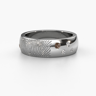 Was könnte einzigartiger sein als ein Fingerabdruck? Das macht diesen unisex Ehering mit Rauchquarz so besonders. Ein persönlicher Fingerabdruck Ihres geliebten Menschen, in das Symbol Ihrer ewigen Liebe eingraviert. Wäre es nicht schön, diesen moderne Ehering an Ihrem Hochzeitstag auf den Finger Ihres Partners zu schieben? Wie funktioniert das? Zuerst bestellen Sie den Ehering, nachdem Sie ihn nach Ihren Wünschen angepasst haben. Sobald Ihre Bestellung aufgegeben wurde, senden Sie uns eine E-Mail mit dem von Ihnen gewünschten Fingerabdruck. Werfen Sie einen Blick in unsere Datenbank am unteren Rand dieser Seite, um weitere Anweisungen zum Erstellen eines Fingerabdrucks zu erhalten. Dieser Platin Minke Ehering hat eine Breite von ±6 mm. Wählen Sie Ihre eigenen Edelsteine, um Ihre Liebe zu repräsentieren. Wir bieten eine Vielzahl an exquisiten Edelsteinen, die unser Goldschmied in Ihre Ehering einfasst. So bekommen Sie am Ende einen einzigartigen Ehering. Einen, der perfekt zu Ihnen passt. Sehen Sie sich einfach die oben genannten Optionen an und passen Sie Ihre Ehering sofort an.Sie können sich übrigens auch inspirieren lassen von diesem Eheringe und den Ringen weiter nach Ihrem Geschmack anpassen. Möchten Sie zum Beispiel lieber einen breiteren oder schmaleren Ring oder einen mattierten oder glänzenden Ring? Alles ist möglich. Auch wenn Sie selbst eine Idee haben für einzigartigen Eheringe, oder vielleicht haben Sie selbst irgendwo sonst einen schönen Set Eheringen gefunden: kein Problem! Sie können uns gern anrufen, unsere Designer besprechen gern alle Möglichkeiten mit Ihnen!Da wir unsere eigenen Ringe entwerfen und liefern, können wir Ihre Eheringe zu einem Preis anbieten, den Sie nirgendwo anders finden. Ein Ring wird auf Bestellung angefertigt, wodurch kein überschüssiges Material anfällt. So können wir Ihnen ein gutes Angebot zum besten Preis machen.Um es einfacher zu machen, bieten wir eine kostenlose 30-tägige Rücksendung.