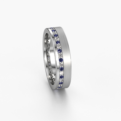 Wussten Sie, dass der Eternity Ehering nicht nur gut aussieht, sondern dass dieser Ehering auch seine eigene symbolische Bedeutung hat? Der Eternity Ehering im Platin, mit perfekt umgebenden kleineren Edelsteine, repräsentiert Ihre ewige Liebe. Da der Ring mit Edelsteinen umgeben ist, scheint er weder Anfang noch Ende zu haben. Schön, finden Sie nicht auch? Dieser spezielle WH0303L15BPM Damen Ehering hat eine Breite von ±5 mm und ist mit 1.3 mm Saphir besetzt. Der Schmuckdesigner, Mitglied eines spezialisierten Teams, erstellt ein grafisches 3D-Design Ihres Ehering. Wenn es Ihnen gefällt, können Sie auch einen Dummy Ring bestellen, so dass Sie ihn anprobieren und Ihre Ehering vor der Anfertigung sehen können. Anschließend wird unser Goldschmied in unserem eigenen Studio mit großer Sorgfalt Ihren einzigartigen Ring kreieren. Eine sorgfältige Arbeit, denn sowohl das Anfertigen, als auch das Finish Ihre Ehering erfordern ein scharfes Auge. Und genau das macht unser Handwerk so besonders. Ihr einzigartiger Ehering ist das Ergebnis echter leidenschaftlicher Handwerkskunst!Dieser Ehering kann auch als Inspirationsquelle dienen. Möchtest du den Ring matt oder glänzend (ohne Aufpreis) haben, oder lieber breiter oder schmaler? Alles ist möglich. Da es unzählige Variationen gibt, können wir nicht alles auf unserer Website zeigen. Hast du eine Idee für schöne Eheringe oder irgendwo anders ein schönes Set Trauringe gesehen? Kontaktiere uns gerne, unsere Designer stehen bereit, um dir zu helfen.Da wir unsere eigenen Ringe entwerfen und liefern, können wir Ihre Eheringe zu einem Preis anbieten, den Sie nirgendwo anders finden. Ein Ring wird auf Bestellung angefertigt, wodurch kein überschüssiges Material anfällt. So können wir Ihnen ein gutes Angebot zum besten Preis machen.Um es einfacher zu machen, bieten wir eine kostenlose 30-tägige Rücksendung.