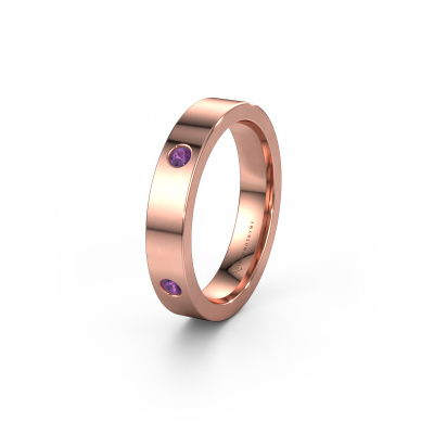 Wussten Sie, dass der Eternity Ehering nicht nur gut aussieht, sondern dass dieser Ehering auch seine eigene symbolische Bedeutung hat? Der Eternity Ehering im Roségold, mit perfekt umgebenden kleineren Edelsteine, repräsentiert Ihre ewige Liebe. Da der Ring mit Edelsteinen umgeben ist, scheint er weder Anfang noch Ende zu haben. Schön, finden Sie nicht auch? Dieser preiswertige WH0104L14BP Damen Ehering hat eine Breite von ±4 mm und ist mit 2.2 mm Amethyst besetzt. Passen Sie einfach Ihre Edelsteine und Farben mit unserem Online-Tool an. Unsere Schmuckdesigner erstellen eine 3D-Zeichnung Ihres Designs, damit Sie das Endergebnis sehen können. Unsere Goldschmiede werden anschließend Ihre Ehering nach alter Handwerkskunst von Hand anfertigen. Unser Ziel ist es, den Ehering Ihre Träume anzufertigen. Ein einzigartiger Ehering, der perfekt zu Ihrem Stil passt!Haben Sie noch spezifische Wünsche? Zum Beispiel ein glänzender oder mattierter Ring (kostenlos)? Breiter oder schmaler? Die Möglichkeiten für diesen Ehering sind unendlich. Sie können gern unsere Schmuckdesigner kontaktieren damit Sie Ihren Ring nach Ihrem Geschmack weiter anpassen können. Auch wenn Sie Ideen haben für den Entwurf von Ihre eigenen Eheringe oder einen bestimmten Ring im Laden gesehen haben, können Sie dieser immer mit unserem Designers überlegen. Unsere Designers werden gern herausgefordert genau diesen Ring zu erstellen wovon Sie Träumen!Mit unserer modernen Technik, kombiniert mit Handwerk, können wir Schmuckstücke von höchster Qualität mit größter Sorgfalt für Sie entwerfen und anpassen. Unsere Eheringe sind immer um 30 Prozent günstiger als bei anderen Juwelieren. Wir fertigen Eheringe auf Bestellung, also müssen wir keine großen Lager unterhalten.Um es einfacher zu machen, bieten wir eine kostenlose 30-tägige Rücksendung.
