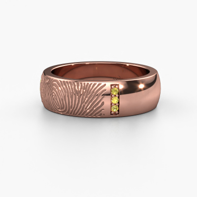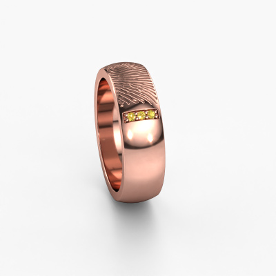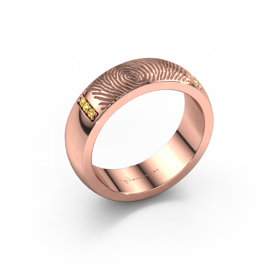Was könnte einzigartiger sein als ein Fingerabdruck? Das macht diesen Damen Ehering mit Gelb Saphir so besonders. Ein persönlicher Fingerabdruck Ihres geliebten Menschen, in das Symbol Ihrer ewigen Liebe eingraviert. Wäre es nicht schön, diesen Fantasie Ehering an Ihrem Hochzeitstag auf den Finger Ihres Partners zu schieben? Wie funktioniert das? Zuerst bestellen Sie den Ehering, nachdem Sie ihn nach Ihren Wünschen angepasst haben. Sobald Ihre Bestellung aufgegeben wurde, senden Sie uns eine E-Mail mit dem von Ihnen gewünschten Fingerabdruck. Werfen Sie einen Blick in unsere Datenbank am unteren Rand dieser Seite, um weitere Anweisungen zum Erstellen eines Fingerabdrucks zu erhalten. Dieser Roségold Daine Ehering hat eine Breite von ±6 mm. Gold steht für Liebe und deshalb liebt unser Goldschmied das Design Ihre Fantasie Ehering. Wir sind ein stolzes Mitglied des Responsible Jewellery Council. Das heißt, wir verwenden nur ehrliches Gold. Darauf sind wir natürlich sehr stolz. Es ist auch möglich, eigenes Gold für das Design Ihre Ehering zu verwenden. Jedes Schmuckstück wird von Hand in unserem eigenen Atelier angefertigt, so dass wir diese Option anbieten können. Das gibt Ihnen die Möglichkeit, Ihrem Ring eine zusätzliche persönliche Note hinzuzufügen. Jeder Ring hat seine eigene Geschichte.Sie können sich übrigens auch inspirieren lassen von diesem Eheringe und den Ringen weiter nach Ihrem Geschmack anpassen. Möchten Sie zum Beispiel lieber einen breiteren oder schmaleren Ring oder einen mattierten oder glänzenden Ring? Alles ist möglich. Auch wenn Sie selbst eine Idee haben für einzigartigen Eheringe, oder vielleicht haben Sie selbst irgendwo sonst einen schönen Set Eheringen gefunden: kein Problem! Sie können uns gern anrufen, unsere Designer besprechen gern alle Möglichkeiten mit Ihnen!Da wir unsere eigenen Ringe entwerfen und liefern, können wir Ihre Eheringe zu einem Preis anbieten, den Sie nirgendwo anders finden. Ein Ring wird auf Bestellung angefertigt, wodurch kein überschüssiges Material anfällt. So können wir Ihnen ein gutes Angebot zum besten Preis machen.Um es einfacher zu machen, bieten wir eine kostenlose 30-tägige Rücksendung.