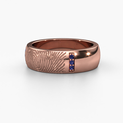 Was könnte einzigartiger sein als ein Fingerabdruck? Das macht diesen Damen Ehering mit Saphir so besonders. Ein persönlicher Fingerabdruck Ihres geliebten Menschen, in das Symbol Ihrer ewigen Liebe eingraviert. Wäre es nicht schön, diesen Fantasie Ehering an Ihrem Hochzeitstag auf den Finger Ihres Partners zu schieben? Wie funktioniert das? Zuerst bestellen Sie den Ehering, nachdem Sie ihn nach Ihren Wünschen angepasst haben. Sobald Ihre Bestellung aufgegeben wurde, senden Sie uns eine E-Mail mit dem von Ihnen gewünschten Fingerabdruck. Werfen Sie einen Blick in unsere Datenbank am unteren Rand dieser Seite, um weitere Anweisungen zum Erstellen eines Fingerabdrucks zu erhalten. Dieser Roségold Daine Ehering hat eine Breite von ±6 mm. Gold steht für Liebe und deshalb liebt unser Goldschmied das Design Ihre Fantasie Ehering. Wir sind ein stolzes Mitglied des Responsible Jewellery Council. Das heißt, wir verwenden nur ehrliches Gold. Darauf sind wir natürlich sehr stolz. Es ist auch möglich, eigenes Gold für das Design Ihre Ehering zu verwenden. Jedes Schmuckstück wird von Hand in unserem eigenen Atelier angefertigt, so dass wir diese Option anbieten können. Das gibt Ihnen die Möglichkeit, Ihrem Ring eine zusätzliche persönliche Note hinzuzufügen. Jeder Ring hat seine eigene Geschichte.Sie können sich übrigens auch inspirieren lassen von diesem Eheringe und den Ringen weiter nach Ihrem Geschmack anpassen. Möchten Sie zum Beispiel lieber einen breiteren oder schmaleren Ring oder einen mattierten oder glänzenden Ring? Alles ist möglich. Auch wenn Sie selbst eine Idee haben für einzigartigen Eheringe, oder vielleicht haben Sie selbst irgendwo sonst einen schönen Set Eheringen gefunden: kein Problem! Sie können uns gern anrufen, unsere Designer besprechen gern alle Möglichkeiten mit Ihnen!Da wir unsere eigenen Ringe entwerfen und liefern, können wir Ihre Eheringe zu einem Preis anbieten, den Sie nirgendwo anders finden. Ein Ring wird auf Bestellung angefertigt, wodurch kein überschüssiges Material anfällt. So können wir Ihnen ein gutes Angebot zum besten Preis machen.Um es einfacher zu machen, bieten wir eine kostenlose 30-tägige Rücksendung.
