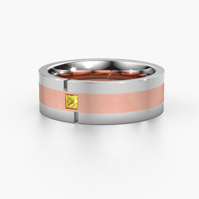 Eine außergewöhnlicher 2 Farbe Ehering! So einzigartig wie Ihre Beziehung! Kein Mensch ist wie der andere und deshalb wollen Sie auch einzigartige Ehering. Dieser exklusive Damen WH2042P Ehering wird von unseren Schmuckdesignern angefertigt und von unserem Goldschiede in Handarbeit gefertigt. In diesem Verfahren verwenden wir pure Handwerkskunst in Kombination mit den neuesten Techniken, um das beste Ergebnis zu erzielen. Unser Goldschiede strebt nach absoluter Perfektion. Ein einzigartiger, handgefertigter Ehering zum Gedenken an Ihren großen Tag! Dieser exklusive WH2042P Roségold Ehering ist mit Gelb Saphir besetzt, ±7 mm breit und hat ein blinkendes Finish. Der Schmuckdesigner, Mitglied eines spezialisierten Teams, erstellt ein grafisches 3D-Design Ihres Ehering. Wenn es Ihnen gefällt, können Sie auch einen Dummy Ring bestellen, so dass Sie ihn anprobieren und Ihre Ehering vor der Anfertigung sehen können. Anschließend wird unser Goldschmied in unserem eigenen Studio mit großer Sorgfalt Ihren einzigartigen Ring kreieren. Eine sorgfältige Arbeit, denn sowohl das Anfertigen, als auch das Finish Ihre Ehering erfordern ein scharfes Auge. Und genau das macht unser Handwerk so besonders. Ihr einzigartiger Ehering ist das Ergebnis echter leidenschaftlicher Handwerkskunst!Haben Sie noch spezifische Wünsche? Zum Beispiel ein glänzender oder mattierter Ring (kostenlos)? Breiter oder schmaler? Die Möglichkeiten für diesen Ehering sind unendlich. Sie können gern unsere Schmuckdesigner kontaktieren damit Sie Ihren Ring nach Ihrem Geschmack weiter anpassen können. Auch wenn Sie Ideen haben für den Entwurf von Ihre eigenen Eheringe oder einen bestimmten Ring im Laden gesehen haben, können Sie dieser immer mit unserem Designers überlegen. Unsere Designers werden gern herausgefordert genau diesen Ring zu erstellen wovon Sie Träumen!Nachdem Sie Ihre Bestellung aufgegeben haben, beginnen unsere Goldschmiede mit dem kreativen Prozess der Herstellung Ihre Eheringe. Wir haben keine Lager. Das ist vorteilhaft, da diese Kosten nicht an Sie weitergegeben werden. Daher sind wir in der Lage, Schmuck zu außergewöhnlich niedrigen Preisen anzubieten.Um es einfacher zu machen, bieten wir eine kostenlose 30-tägige Rücksendung.