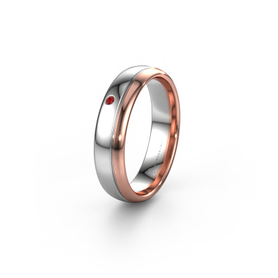 Ein einzigartiger Weißgold tricolor Damen Ehering, von Ihnen entworfen und kunstvoll von unserem Goldschiede in unserem eigenen Atelier angefertigt! Ein schönes Symbol, das Ihre Liebe widerspiegelt und das Sie ein Leben lang mit sich tragen! Jeder Ring, den wir anbieten, wird kunstvoll von Hand in unserem eigenen Handwerksbetrieb geschmiedet. Das ermöglicht es uns, einen Ring für Sie zu kreieren, der ganz nach Ihrem Geschmack angepasst ist und Ihrem Stil entspricht. Dieser traditionell WH0301L35AP Ehering ist mit rund Rubin besetzt, ±5 mm breit und hat ein blinkendes Finish. Sie können in unserem Online-Tool eine Kombination aus Edelmetallen wählen. Alles ist möglich! Es ist gut, sich die Eigenschaften der verschiedenen Edelmetalle anzusehen. Gold und Silber sind zum Beispiel weichere Metalle. Die Karat werden durch die Menge der hinzugefügten zusätzlichen Metalle bestimmt. Wenn der Goldschmied nicht viel hinzufügt, sind die Karat höher und der Ehering wird weicher. Wenn er mehr Metalle hinzufügt, hat das Schmuckstück einen geringeren Wert in Karat. Ein weicheres Edelmetall kann trotzdem für Ihre traditionell Ehering verwendet werden! Wenn Sie ein Edelmetall bevorzugen, das ein Leben lang halten wird, empfehlen wir Platin. Es ist das robusteste und langlebigste Metall, dass unser Goldschmied verwendet.Haben Sie noch weitere Wünschen für Ihre Ehering? Zum Beispiel ein schmälerer oder breitere Ring? Oder gerade glänzend oder mattiert? Es gibt noch unendliche andere Variationen. Sie können diese immer mit unseren Schmuckdesigners besprechen. Auch wenn Sie selbst ein Design im Kopf haben, helfen unsere Designers Ihnen gern weiter um Ihre Eheringe weiter zu zeichnen bis dieser komplett nach Ihrem Geschmack ist. Sie können uns gern kontaktieren!Nachdem Sie Ihre Bestellung aufgegeben haben, beginnen unsere Goldschmiede mit dem kreativen Prozess der Herstellung Ihre Eheringe. Wir haben keine Lager. Das ist vorteilhaft, da diese Kosten nicht an Sie weitergegeben werden. Daher sind wir in der Lage, Schmuck zu außergewöhnlich niedrigen Preisen anzubieten.Um es einfacher zu machen, bieten wir eine kostenlose 30-tägige Rücksendung.