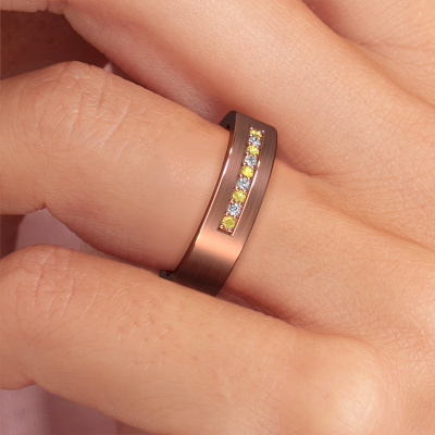 Dieser moderne Damen Ehering ist ein atemberaubender, moderner Ehering, der wirklich Ihre einzigartige Liebe symbolisiert! Perfekt für Männer mit einem zeitgenössischen Stil. Einfach den Ring nach Ihren Wünschen anpassen. Unser Goldschiede würde sich jeder Herausforderung stellen, um einen perfekten Roségold Ring zu kreieren und wird in unserem eigenen Atelier an dem von Ihnen entworfenen Ring arbeiten. Er wird Ihren WH0113L15BM Ehering sorgfältig und leidenschaftlich mit den modernsten Techniken, kombiniert mit purer Handwerkskunst, von Hand anfertigen. Und das ergibt einen einzigartigen, zeitgenössischen Ring! Dieser moderne WH0113L15BM Ehering ist mit rund Gelb Saphir besetzt, ±5 mm breit und hat ein mattes Finish. Gold steht für Liebe und deshalb liebt unser Goldschmied das Design Ihre moderne Ehering. Wir sind ein stolzes Mitglied des Responsible Jewellery Council. Das heißt, wir verwenden nur ehrliches Gold. Darauf sind wir natürlich sehr stolz. Es ist auch möglich, eigenes Gold für das Design Ihre Ehering zu verwenden. Jedes Schmuckstück wird von Hand in unserem eigenen Atelier angefertigt, so dass wir diese Option anbieten können. Das gibt Ihnen die Möglichkeit, Ihrem Ring eine zusätzliche persönliche Note hinzuzufügen. Jeder Ring hat seine eigene Geschichte.Sie können sich übrigens auch inspirieren lassen von diesem Eheringe und den Ringen weiter nach Ihrem Geschmack anpassen. Möchten Sie zum Beispiel lieber einen breiteren oder schmaleren Ring oder einen mattierten oder glänzenden Ring? Alles ist möglich. Auch wenn Sie selbst eine Idee haben für einzigartigen Eheringe, oder vielleicht haben Sie selbst irgendwo sonst einen schönen Set Eheringen gefunden: kein Problem! Sie können uns gern anrufen, unsere Designer besprechen gern alle Möglichkeiten mit Ihnen!Da wir unseren eigenen Schmuckstücken entwerfen und liefern, können wir Ihnen Eheringe zu einem Preis anbieten, den Sie nirgendwo anders finden. Ihre Eheringe werden auf Bestellung angefertigt, wodurch kein überschüssiges Material anfällt. So können wir Ihnen ein gutes Angebot zum besten Preis machen.Um es einfacher zu machen, bieten wir eine kostenlose 30-tägige Rücksendung.
