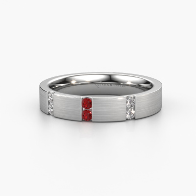 Dieser moderne Damen Trauring ist ein atemberaubender, moderner Trauring, der wirklich Ihre einzigartige Liebe symbolisiert! Perfekt für Männer mit einem zeitgenössischen Stil. Einfach den Ring nach Ihren Wünschen anpassen. Unser Goldschiede würde sich jeder Herausforderung stellen, um einen perfekten Weißgold Ring zu kreieren und wird in unserem eigenen Atelier an dem von Ihnen entworfenen Ring arbeiten. Er wird Ihren WH2133L14BM Trauring sorgfältig und leidenschaftlich mit den modernsten Techniken, kombiniert mit purer Handwerkskunst, von Hand anfertigen. Und das ergibt einen einzigartigen, zeitgenössischen Ring! Dieser moderne WH2133L14BM Trauring ist mit rund Rubin besetzt, ±4 mm breit und hat ein mattiert-glänzende Finish. Sie können in unserem Online-Tool eine Kombination aus Edelmetallen wählen. Alles ist möglich! Es ist gut, sich die Eigenschaften der verschiedenen Edelmetalle anzusehen. Gold und Silber sind zum Beispiel weichere Metalle. Die Karat werden durch die Menge der hinzugefügten zusätzlichen Metalle bestimmt. Wenn der Goldschmied nicht viel hinzufügt, sind die Karat höher und der Trauring wird weicher. Wenn er mehr Metalle hinzufügt, hat das Schmuckstück einen geringeren Wert in Karat. Ein weicheres Edelmetall kann trotzdem für Ihre moderne Trauring verwendet werden! Wenn Sie ein Edelmetall bevorzugen, das ein Leben lang halten wird, empfehlen wir Platin. Es ist das robusteste und langlebigste Metall, dass unser Goldschmied verwendet.Haben Sie noch andere Wünsche für Ihre Trauring und können Sie dieser hier nicht zurückfinden? Bitte kontaktieren Sie unsere Schmuckdesigners! Wir können zum Beispiel einen Ring mattieren und den Ring breiter oder schmaler für Sie machen. Und haben Sie selbst einen Vorschlag für einen moderne Trauringe? Unsere Designers werden gern herausgefordert, um Ihrem Ring zu Ihren Vorstellungen zu gestalten!Da wir unseren eigenen Schmuckstücken entwerfen und liefern, können wir Ihnen Trauringe zu einem Preis anbieten, den Sie nirgendwo anders finden. Ihre Trauringe werden auf Bestellung angefertigt, wodurch kein überschüssiges Material anfällt. So können wir Ihnen ein gutes Angebot zum besten Preis machen.Um es einfacher zu machen, bieten wir eine kostenlose 30-tägige Rücksendung.