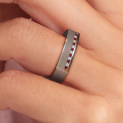 Eine außergewöhnlicher rechteckige Ehering! So einzigartig wie Ihre Beziehung! Kein Mensch ist wie der andere und deshalb wollen Sie auch einzigartige Ehering. Dieser einzigartige Damen WH2005L Ehering wird von unseren Schmuckdesignern angefertigt und von unserem Goldschiede in Handarbeit gefertigt. In diesem Verfahren verwenden wir pure Handwerkskunst in Kombination mit den neuesten Techniken, um das beste Ergebnis zu erzielen. Unser Goldschiede strebt nach absoluter Perfektion. Ein einzigartiger, handgefertigter Ehering zum Gedenken an Ihren großen Tag! Dieser einzigartige WH2005L Weißgold Ehering ist mit Rubin besetzt, ±5 mm breit und hat ein mattiert-glänzende Finish. Einen Ehering wählt man nicht aus einer Laune heraus. Am Ende möchten Sie nämlich einen Ring, der vollständig Ihrem Stil und Ihren Vorlieben entspricht. Ein Spiegelbild Ihrer Liebe und Beziehung. Ein Ring, der ein Leben lang hält. Ein Symbol für alles, was Sie verbindet. Ihren Traum-Ring zu kreieren ist unsere Leidenschaft. Dies wird kunstvoll von Hand in unserem eigenen Studio gemacht, so dass wir Ihren Ring perfektionieren können. Der lohnendste Job der Welt!Haben Sie noch spezifische Wünsche? Zum Beispiel ein glänzender oder mattierter Ring (kostenlos)? Breiter oder schmaler? Die Möglichkeiten für diesen Ehering sind unendlich. Sie können gern unsere Schmuckdesigner kontaktieren damit Sie Ihren Ring nach Ihrem Geschmack weiter anpassen können. Auch wenn Sie Ideen haben für den Entwurf von Ihre eigenen Eheringe oder einen bestimmten Ring im Laden gesehen haben, können Sie dieser immer mit unserem Designers überlegen. Unsere Designers werden gern herausgefordert genau diesen Ring zu erstellen wovon Sie Träumen!Nachdem Sie Ihre Bestellung aufgegeben haben, beginnen unsere Goldschmiede mit dem kreativen Prozess der Herstellung Ihre Eheringe in unserem eigenen Studio. Wir haben keine Lager. Das ist vorteilhaft, da diese Kosten nicht an Sie weitergegeben werden. Daher sind wir in der Lage, Schmuck von höchster Qualität zu außergewöhnlich niedrigen Preisen anzubieten.Um es einfacher zu machen, bieten wir eine kostenlose 30-tägige Rücksendung.