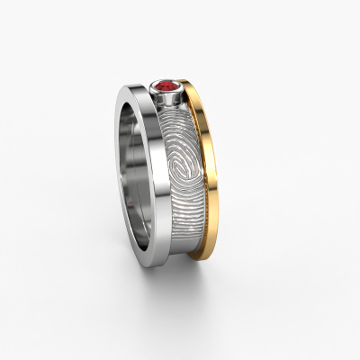 Was könnte einzigartiger sein als ein Fingerabdruck? Das macht diesen Damen Ehering mit Rubin so besonders. Ein persönlicher Fingerabdruck Ihres geliebten Menschen, in das Symbol Ihrer ewigen Liebe eingraviert. Wäre es nicht schön, diesen Fantasie Ehering an Ihrem Hochzeitstag auf den Finger Ihres Partners zu schieben? Wie funktioniert das? Zuerst bestellen Sie den Ehering, nachdem Sie ihn nach Ihren Wünschen angepasst haben. Sobald Ihre Bestellung aufgegeben wurde, senden Sie uns eine E-Mail mit dem von Ihnen gewünschten Fingerabdruck. Werfen Sie einen Blick in unsere Datenbank am unteren Rand dieser Seite, um weitere Anweisungen zum Erstellen eines Fingerabdrucks zu erhalten. Dieser Weißgold Francisca Ehering hat eine Breite von ±7 mm. Wählen Sie Ihre eigenen Edelsteine, um Ihre Liebe zu repräsentieren. Wir bieten eine Vielzahl an exquisiten Edelsteinen, die unser Goldschmied in Ihre Ehering einfasst. So bekommen Sie am Ende einen einzigartigen Ehering. Einen, der perfekt zu Ihnen passt. Sehen Sie sich einfach die oben genannten Optionen an und passen Sie Ihre Ehering sofort an.Sie können sich übrigens auch inspirieren lassen von diesem Eheringe und den Ringen weiter nach Ihrem Geschmack anpassen. Möchten Sie zum Beispiel lieber einen breiteren oder schmaleren Ring oder einen mattierten oder glänzenden Ring? Alles ist möglich. Auch wenn Sie selbst eine Idee haben für einzigartigen Eheringe, oder vielleicht haben Sie selbst irgendwo sonst einen schönen Set Eheringen gefunden: kein Problem! Sie können uns gern anrufen, unsere Designer besprechen gern alle Möglichkeiten mit Ihnen!Nachdem Sie Ihre Bestellung aufgegeben haben, beginnen unsere Goldschmiede mit dem kreativen Prozess der Herstellung Ihre Eheringe. Wir haben keine Lager. Das ist vorteilhaft, da diese Kosten nicht an Sie weitergegeben werden. Daher sind wir in der Lage, Schmuck zu außergewöhnlich niedrigen Preisen anzubieten.Um es einfacher zu machen, bieten wir eine kostenlose 30-tägige Rücksendung.