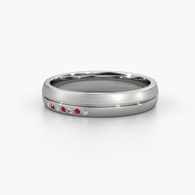 Was für eine perfekte Kombination zwei verschiedener Edelmetalle. Sie scheinen sich im trendige Design dieses Rings zu verstärken! Unser Goldschiede würde sich freuen, einen einzigartigen Ring für Sie zu kreieren, ganz nach Ihren Wünschen. Jeder Ring, den wir anbieten, wird kunstvoll von Hand in unserem eigenen Atelier angefertigt. Das macht es möglich, dass wir Ihre Trendig in die Realität umsetzen und Ihnen dabei helfen, Ihren eigenen, persönlichen Ring zu kreieren, der an Ihren Stil angepasst ist. Dieser trendige Platin WH0216L24APM Damen Ehering ist mit rund Rubin besetzt, ±4 mm breit und hat ein mattiert-glänzende Finish. Sie können in unserem Online-Tool eine Kombination aus Edelmetallen wählen. Alles ist möglich! Es ist gut, sich die Eigenschaften der verschiedenen Edelmetalle anzusehen. Gold und Silber sind zum Beispiel weichere Metalle. Die Karat werden durch die Menge der hinzugefügten zusätzlichen Metalle bestimmt. Wenn der Goldschmied nicht viel hinzufügt, sind die Karat höher und der Ehering wird weicher. Wenn er mehr Metalle hinzufügt, hat das Schmuckstück einen geringeren Wert in Karat. Ein weicheres Edelmetall kann trotzdem für Ihre trendige Ehering verwendet werden! Wenn Sie ein Edelmetall bevorzugen, das ein Leben lang halten wird, empfehlen wir Platin. Es ist das robusteste und langlebigste Metall, dass unser Goldschmied verwendet.Sie können sich übrigens auch inspirieren lassen von diesem Eheringe und den Ringen weiter nach Ihrem Geschmack anpassen. Möchten Sie zum Beispiel lieber einen breiteren oder schmaleren Ring oder einen mattierten oder glänzenden Ring? Alles ist möglich. Auch wenn Sie selbst eine Idee haben für einzigartigen Eheringe, oder vielleicht haben Sie selbst irgendwo sonst einen schönen Set Eheringen gefunden: kein Problem! Sie können uns gern anrufen, unsere Designer besprechen gern alle Möglichkeiten mit Ihnen!Nachdem Sie Ihre Bestellung aufgegeben haben, beginnen unsere Goldschmiede mit dem kreativen Prozess der Herstellung Ihre Eheringe. Wir haben keine Lager. Das ist vorteilhaft, da diese Kosten nicht an Sie weitergegeben werden. Daher sind wir in der Lage, Schmuck zu außergewöhnlich niedrigen Preisen anzubieten.Um es einfacher zu machen, bieten wir eine kostenlose 30-tägige Rücksendung.