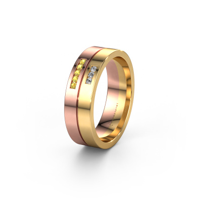 Was für eine perfekte Kombination zwei verschiedener Edelmetalle. Sie scheinen sich im moderne Design dieses Rings zu verstärken! Unser Goldschiede würde sich freuen, einen einzigartigen Ring für Sie zu kreieren, ganz nach Ihren Wünschen. Jeder Ring, den wir anbieten, wird kunstvoll von Hand in unserem eigenen Atelier angefertigt. Das macht es möglich, dass wir Ihre Modern in die Realität umsetzen und Ihnen dabei helfen, Ihren eigenen, persönlichen Ring zu kreieren, der an Ihren Stil angepasst ist. Dieser moderne Roségold WH0207L16AP Damen Ehering ist mit rund Gelb Saphir besetzt, ±6 mm breit und hat ein blinkendes Finish.