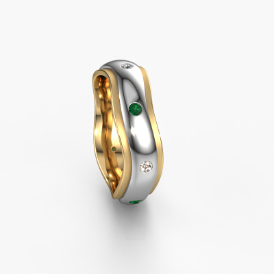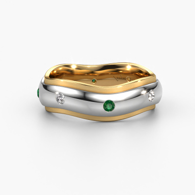 Was für eine perfekte Kombination zwei verschiedener Edelmetalle. Sie scheinen sich im moderne Design dieses Rings zu verstärken! Unser Goldschiede würde sich freuen, einen einzigartigen Ring für Sie zu kreieren, ganz nach Ihren Wünschen. Jeder Ring, den wir anbieten, wird kunstvoll von Hand in unserem eigenen Atelier angefertigt. Das macht es möglich, dass wir Ihre Modern in die Realität umsetzen und Ihnen dabei helfen, Ihren eigenen, persönlichen Ring zu kreieren, der an Ihren Stil angepasst ist. Dieser moderne Weißgold WH2051L26DP Damen Ehering ist mit rund Smaragd besetzt, ±6 mm breit und hat ein mattiert-glänzende Finish.