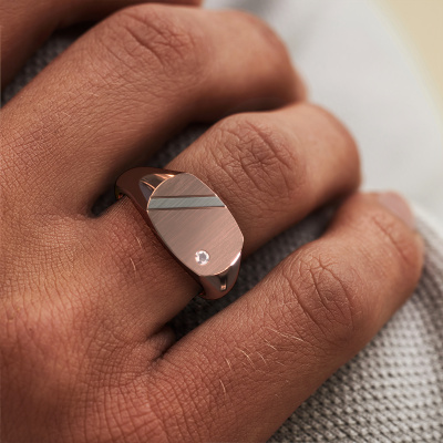 Kleiden Sie sich mit diesem 2 Farben Roségold Bram 2 Herrenring, denn mit dem richtigen Ring geben Sie ein starkes persönliches Statement. Dieser Bram 2 Herrenring wird hier in 14 Karat Roségold gezeigt. Wenn das nicht Ihrem Stil entspricht, können Sie das Edelmetall ganz nach Ihren Wünschen gestalten. Schließlich möchten Sie einen Herrenring, der zu Ihrem Stil passt. Ein Ring, der wirklich zu Ihnen passt. Einen, der sagt: Das bin ich!Sobald Sie Ihren Bram 2 Siegelring mit unserem Online-Tool fertiggestellt haben, beginnen unsere Goldschmiede mit der kreativen Anfertigung Ihres Ringes. Dieser wird mit Leidenschaft und Sorgfalt nach alter Handwerkskunst gefertigt. Darüber arbeiten wir mit ehrlichen Edelsteinen. Einfach online mit unserem Online-Tool anpassen, wenn Sie Änderungen wünschen.