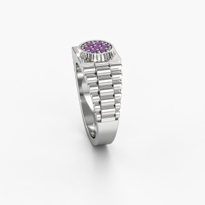 Jeder kennt das Design dieser bekannten Uhrenmarke. Mit Platin Verbindungen ist dieser massive Platin Nout Herrenring perfekt für trendige, erfolgreiche Männer geeignet. Ein Mann, der sich mit einem markanten Herrenring mit 2 mm Amethyst schmücken möchte. Zeigen Sie allen, woraus Sie gemacht sind!Unsere Goldschmiede kreieren Ihren individuellen Herrenring leidenschaftlich, mit größter Sorgfalt und nach Ihren Wünschen. Das Platin Herrenring, wie hier abgebildet, kann mit unserem Online-Tool individuell angepasst werden. Bitte fragen Sie unsere Schmuckdesigner um Hilfe, wenn Sie Änderungen wünschen, die in unserem Online-Tool nicht verfügbar sind. Gerne beantworten wir Ihnen alle offenen Fragen.Unsere Online-Kollektion wird täglich um neue Schmuckdesigns ergänzt. Unser Team von leidenschaftlichen Designern ist bemüht, außergewöhnliche und vielfältige Designs zu kreieren. Haben Sie einen Ring gesehen, der Ihnen gefällt? Setzen Sie sich mit uns in Verbindung. Basierend auf einem guten Preis/Leistungsverhältnis machen wir Ihnen ein Angebot, das Sie nicht ablehnen können!Mit unserer modernen Technik können wir Schmuckstücke von höchster Qualität mit größter Sorgfalt für Sie entwerfen und anpassen. Unsere Ringe sind immer um 30 Prozent günstiger als bei anderen Juwelieren. Wir fertigen Ringe auf Bestellung, also müssen wir keine großen Lager unterhalten. Wenn Sie ein bestimmtes Budget haben, beraten wir Sie gerne entsprechend.Um es einfacher zu machen, bieten wir eine kostenlose 30-tägige Rücksendung.