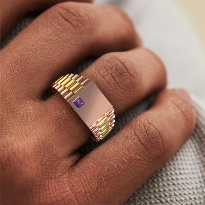 Jeder kennt das Design dieser bekannten Uhrenmarke. Mit 14 Karat Roségold Verbindungen ist dieser massive Roségold Pelle Herrenring perfekt für trendige, erfolgreiche Männer geeignet. Ein Mann, der sich mit einem markanten Herrenring mit 3 mm Amethyst schmücken möchte. Zeigen Sie allen, woraus Sie gemacht sind!Sobald Sie Ihren Pelle Herrenring mit unserem Online-Tool fertiggestellt haben, beginnen unsere Goldschmiede mit der kreativen Anfertigung Ihres Ringes. Dieser wird mit Leidenschaft und Sorgfalt nach alter Handwerkskunst gefertigt. Darüber arbeiten wir mit ehrlichen Edelsteinen. Einfach online mit unserem Online-Tool anpassen, wenn Sie Änderungen wünschen. Wenn Sie spezielle Änderungen an Ihrem Pelle Herrenring vornehmen möchten, die in unserem Online-Tool nicht verfügbar sind, wenden Sie sich bitte an unsere Experten.Unser Team von talentierten, leidenschaftlichen Designern fügt unserer Online-Kollektion täglich neue Ringe-Designs hinzu. Unser Ziel dabei ist es, Ihnen eine große Vielfalt an Schmuckstücken anbieten zu können. Bitte zögern Sie nicht, ein Angebot anzufordern, wenn Sie spezielle Wünsche für Ihren Ring haben. Wir garantieren Ihnen ein Angebot, das Sie nicht ablehnen können.Nachdem Sie Ihre Bestellung aufgegeben haben, beginnen unsere Goldschmiede mit dem kreativen Prozess der Herstellung Ihres Pelle Ring. Wir haben keine Lager. Das ist vorteilhaft, da diese Kosten nicht an Sie weitergegeben werden. Daher sind wir in der Lage, Schmuck zu außergewöhnlich niedrigen Preisen anzubieten.Um es einfacher zu machen, bieten wir eine kostenlose 30-tägige Rücksendung.
