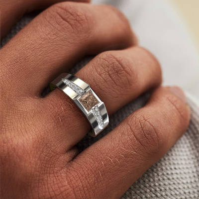 Sind Sie auf der Suche nach einem moderne Weißgold Pinky Ring, der etwas Besonderes ist? Dann ist unser Quadratische, Weißgold Simon Pinky Ring mit 0.50 crt princess Braun Diamant der perfekte Ring für Sie! Dieser Ring, wie hier gezeigt, ist aus Weißgold, kann aber nach Belieben angepasst werden. Mit diesem Weißgold Simon Pinky Ring mit Braune Diamanten, einem Ring für ambitionierte Männer, können Sie allen zeigen, wer Sie sind. Wie gefällt Ihnen dieser moderne Weißgold Herrenring? Passen Sie diesen Simon Herrenring einfach mit unserem Online-Tool an. Anschließend wird Ihr persönlicher, Luxus Simon Herrenring in Handarbeit von unseren Goldschmieden angefertigt. Edelmetalle und Edelsteine können nach Ihren Wünschen angepasst werden. Haben Sie spezielle Wünsche, die in unserem Online-Tool nicht verfügbar sind? Setzen Sie sich mit uns in Verbindung. Wir passen Ihren persönlichen moderne Herrenring nach Ihren Wünschen an.Unsere talentierten, leidenschaftlichen Designer fügen unserer Online-Kollektion täglich neue Designs hinzu. Zusammen versuchen sie, eine vielfältige Kollektion feinster Schmuckstücke zu erstellen. Wenn Sie es vorziehen, einen Ring nach Ihrem eigenen Entwurf zu machen, können Sie gerne ein Angebot anfordern. Wir machen Ihnen ein großartiges Angebot, basierend auf Qualität und Preis.Durch die Kombination modernster Technik mit uralter Handwerkskunst können wir alle Ringe in unserem eigenen Studio anfertigen. Jedes Schmuckstück wird auf Anfrage gefertigt. Das ist vorteilhaft, weil wir Ihnen dadurch einen Preis anbieten können, den Sie nirgendwo anders finden.Um es einfacher zu machen, bieten wir eine kostenlose 30-tägige Rücksendung.