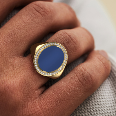 Der massive Adam 4 Siegelring mit 15x12 mm oval form Lapislazuli Oberfläche, wie oben gezeigt, ist voll von Tradition. Üblicherweise wurde der Siegelring vom Vater an den Sohn weitergegeben. Beginnen Sie Ihre eigene Tradition mit diesem massive, Gold Siegelring. Wir würden uns auch sehr freuen, Ihren Ring mit einem Monogramm oder einem Familienwappen gravieren zu dürfen. Bitte sehen Sie sich unsere Datenbank für weitere Anfragen und Optionen an. Sie können die Datenbank am unteren Rand dieser Seite finden. Beginnen Sie eine neue Tradition mit dem exklusive Gold Adam 4 Siegelring. Sobald Sie Ihren Adam 4 Siegelring mit unserem Online-Tool fertiggestellt haben, beginnen unsere Goldschmiede mit der kreativen Anfertigung Ihres Ringes. Dieser wird mit Leidenschaft und Sorgfalt nach alter Handwerkskunst gefertigt. Darüber arbeiten wir mit ehrlichen Edelsteinen. Einfach online mit unserem Online-Tool anpassen, wenn Sie Änderungen wünschen. Wenn Sie spezielle Änderungen an Ihrem Adam 4 Siegelring vornehmen möchten, die in unserem Online-Tool nicht verfügbar sind, wenden Sie sich bitte an unsere Experten.Unser Team von talentierten, leidenschaftlichen Designern fügt unserer Online-Kollektion täglich neue Ring-Designs hinzu. Unser Ziel dabei ist es, Ihnen eine große Vielfalt an Schmuckstücken anbieten zu können. Bitte zögern Sie nicht, ein Angebot anzufordern, wenn Sie spezielle Wünsche für Ihren Ring haben. Wir garantieren Ihnen ein Angebot, das Sie nicht ablehnen können.Nach Erhalt Ihrer Bestellung beginnen unsere Goldschmiede mit Leidenschaft den kreativen Prozess und fertigen Ihren Ring in unserem eigenen Studio. Da wir keine großen Lager haben, werden diese Kosten nicht an Sie weitergegeben. Unsere Preisgestaltung ist der Beweis dafür! Wir bieten Schmuck zum niedrigsten Preis, garantiert.Um es einfacher zu machen, bieten wir eine kostenlose 30-tägige Rücksendung.