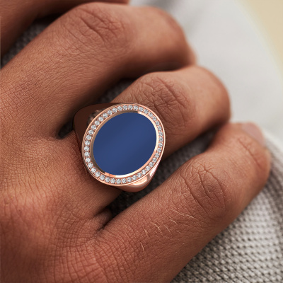 Der massive Adam 4 Siegelring mit 15x12 mm oval form Lapislazuli Oberfläche, wie oben gezeigt, ist voll von Tradition. Üblicherweise wurde der Siegelring vom Vater an den Sohn weitergegeben. Beginnen Sie Ihre eigene Tradition mit diesem massive, Roségold Siegelring. Wir würden uns auch sehr freuen, Ihren Ring mit einem Monogramm oder einem Familienwappen gravieren zu dürfen. Bitte sehen Sie sich unsere Datenbank für weitere Anfragen und Optionen an. Sie können die Datenbank am unteren Rand dieser Seite finden. Beginnen Sie eine neue Tradition mit dem exklusive Roségold Adam 4 Siegelring. Sobald Sie Ihren Adam 4 Siegelring mit unserem Online-Tool fertiggestellt haben, beginnen unsere Goldschmiede mit der kreativen Anfertigung Ihres Ringes. Dieser wird mit Leidenschaft und Sorgfalt nach alter Handwerkskunst gefertigt. Darüber arbeiten wir mit ehrlichen Edelsteinen. Einfach online mit unserem Online-Tool anpassen, wenn Sie Änderungen wünschen. Wenn Sie spezielle Änderungen an Ihrem Adam 4 Siegelring vornehmen möchten, die in unserem Online-Tool nicht verfügbar sind, wenden Sie sich bitte an unsere Experten.Unser Team von talentierten, leidenschaftlichen Designern fügt unserer Online-Kollektion täglich neue Ring-Designs hinzu. Unser Ziel dabei ist es, Ihnen eine große Vielfalt an Schmuckstücken anbieten zu können. Bitte zögern Sie nicht, ein Angebot anzufordern, wenn Sie spezielle Wünsche für Ihren Ring haben. Wir garantieren Ihnen ein Angebot, das Sie nicht ablehnen können.Nach Erhalt Ihrer Bestellung beginnen unsere Goldschmiede mit Leidenschaft den kreativen Prozess und fertigen Ihren Ring in unserem eigenen Studio. Da wir keine großen Lager haben, werden diese Kosten nicht an Sie weitergegeben. Unsere Preisgestaltung ist der Beweis dafür! Wir bieten Schmuck zum niedrigsten Preis, garantiert.Um es einfacher zu machen, bieten wir eine kostenlose 30-tägige Rücksendung.