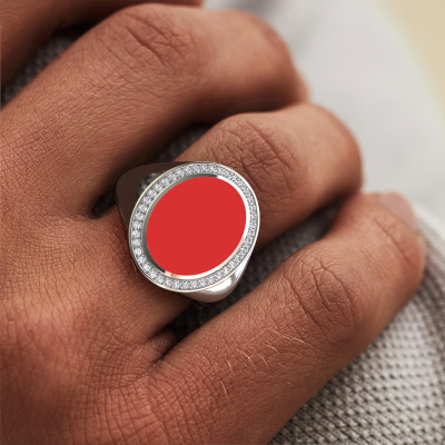 Der massive Adam 4 Siegelring mit 15x12 mm oval form Rot Emaille Oberfläche, wie oben gezeigt, ist voll von Tradition. Üblicherweise wurde der Siegelring vom Vater an den Sohn weitergegeben. Beginnen Sie Ihre eigene Tradition mit diesem massive, Platin Siegelring. Wir würden uns auch sehr freuen, Ihren Ring mit einem Monogramm oder einem Familienwappen gravieren zu dürfen. Bitte sehen Sie sich unsere Datenbank für weitere Anfragen und Optionen an. Sie können die Datenbank am unteren Rand dieser Seite finden. Beginnen Sie eine neue Tradition mit dem exklusive Platin Adam 4 Siegelring. Sobald Sie Ihren Adam 4 Siegelring mit unserem Online-Tool fertiggestellt haben, beginnen unsere Goldschmiede mit der kreativen Anfertigung Ihres Ringes. Dieser wird mit Leidenschaft und Sorgfalt nach alter Handwerkskunst gefertigt. Darüber arbeiten wir mit ehrlichen Edelsteinen. Einfach online mit unserem Online-Tool anpassen, wenn Sie Änderungen wünschen. Wenn Sie spezielle Änderungen an Ihrem Adam 4 Siegelring vornehmen möchten, die in unserem Online-Tool nicht verfügbar sind, wenden Sie sich bitte an unsere Experten.Unser Team von talentierten, leidenschaftlichen Designern fügt unserer Online-Kollektion täglich neue Ring-Designs hinzu. Unser Ziel dabei ist es, Ihnen eine große Vielfalt an Schmuckstücken anbieten zu können. Bitte zögern Sie nicht, ein Angebot anzufordern, wenn Sie spezielle Wünsche für Ihren Ring haben. Wir garantieren Ihnen ein Angebot, das Sie nicht ablehnen können.Nach Erhalt Ihrer Bestellung beginnen unsere Goldschmiede mit Leidenschaft den kreativen Prozess und fertigen Ihren Ring in unserem eigenen Studio. Da wir keine großen Lager haben, werden diese Kosten nicht an Sie weitergegeben. Unsere Preisgestaltung ist der Beweis dafür! Wir bieten Schmuck zum niedrigsten Preis, garantiert.Um es einfacher zu machen, bieten wir eine kostenlose 30-tägige Rücksendung.