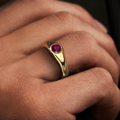 Für den zeitgemäßen, stilvollen Mann, der ein bisschen Extravaganz mag, bieten wir den schmale 14 Karat Gold Thorben Pinky Ring mit Rhodolit an. Traditionell wurde ein Ring am kleinen Finger als Zeichen des Reichtums getragen. Deshalb ist ein Ring am kleinen Finger perfekt für Männer, die auffallen wollen. Unsere Goldschmiede kreieren Ihren individuellen Herrenring leidenschaftlich, mit größter Sorgfalt und nach Ihren Wünschen. Das Gold Herrenring, wie hier abgebildet, kann mit unserem Online-Tool individuell angepasst werden. Bitte fragen Sie unsere Schmuckdesigner um Hilfe, wenn Sie Änderungen wünschen, die in unserem Online-Tool nicht verfügbar sind. Gerne beantworten wir Ihnen alle offenen Fragen.