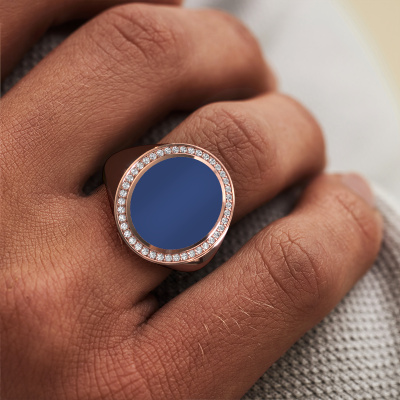 Der ovale Adam 5 Siegelring mit 15x13 mm oval form Lapislazuli Oberfläche, wie oben gezeigt, ist voll von Tradition. Üblicherweise wurde der Siegelring vom Vater an den Sohn weitergegeben. Beginnen Sie Ihre eigene Tradition mit diesem ovale, Roségold Siegelring. Wir würden uns auch sehr freuen, Ihren Ring mit einem Monogramm oder einem Familienwappen gravieren zu dürfen. Bitte sehen Sie sich unsere Datenbank für weitere Anfragen und Optionen an. Sie können die Datenbank am unteren Rand dieser Seite finden. Beginnen Sie eine neue Tradition mit dem exklusive Roségold Adam 5 Siegelring. Der Diamanten Adam 5 Siegelring, wie hier abgebildet, kann ganz nach Ihren Wünschen gestaltet werden. Unser Online-Tool bietet viele verschiedene Möglichkeiten. Bitte kontaktieren Sie uns, wenn Sie Änderungen an Ihrem Adam 5 Siegelring wünschen, die in unserem Online-Tool nicht verfügbar sind.Unsere talentierten, leidenschaftlichen Designer fügen unserer Online-Kollektion täglich neue Designs hinzu. Zusammen versuchen sie, eine vielfältige Kollektion feinster Schmuckstücke zu erstellen. Wenn Sie es vorziehen, einen Ring nach Ihrem eigenen Entwurf zu machen, können Sie gerne ein Angebot anfordern. Wir machen Ihnen ein großartiges Angebot, basierend auf Qualität und Preis.Nachdem Sie Ihre Bestellung aufgegeben haben, beginnen unsere Goldschmiede mit dem kreativen Prozess der Herstellung Ihres Adam 5 Ring. Wir haben keine Lager. Das ist vorteilhaft, da diese Kosten nicht an Sie weitergegeben werden. Daher sind wir in der Lage, Schmuck zu außergewöhnlich niedrigen Preisen anzubieten.Um es einfacher zu machen, bieten wir eine kostenlose 30-tägige Rücksendung.