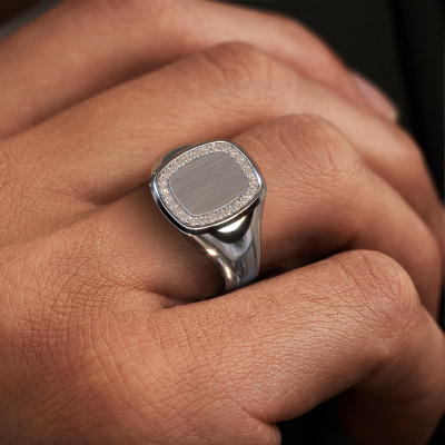 Kleiden Sie sich mit diesem flache Weißgold Floris Cushion 2 Herrenring, denn mit dem richtigen Ring geben Sie ein starkes persönliches Statement. Dieser Floris Cushion 2 Herrenring wird hier in 14 Karat Weißgold gezeigt. Wenn das nicht Ihrem Stil entspricht, können Sie das Edelmetall ganz nach Ihren Wünschen gestalten. Schließlich möchten Sie einen Herrenring, der zu Ihrem Stil passt. Ein Ring, der wirklich zu Ihnen passt. Einen, der sagt: Das bin ich!Wie gefällt Ihnen dieser moderne Weißgold Siegelring? Passen Sie diesen Floris Cushion 2 Siegelring einfach mit unserem Online-Tool an. Anschließend wird Ihr persönlicher, Monogramme Floris Cushion 2 Siegelring in Handarbeit von unseren Goldschmieden angefertigt. Edelmetalle und Edelsteine können nach Ihren Wünschen angepasst werden. Haben Sie spezielle Wünsche, die in unserem Online-Tool nicht verfügbar sind? Setzen Sie sich mit uns in Verbindung. Wir passen Ihren persönlichen moderne Siegelring nach Ihren Wünschen an.