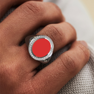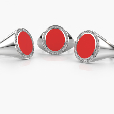 Der ovale Adam 3 Siegelring mit 13x11 mm oval form Rot Emaille Oberfläche, wie oben gezeigt, ist voll von Tradition. Üblicherweise wurde der Siegelring vom Vater an den Sohn weitergegeben. Beginnen Sie Ihre eigene Tradition mit diesem ovale, Weißgold Siegelring. Wir würden uns auch sehr freuen, Ihren Ring mit einem Monogramm oder einem Familienwappen gravieren zu dürfen. Bitte sehen Sie sich unsere Datenbank für weitere Anfragen und Optionen an. Sie können die Datenbank am unteren Rand dieser Seite finden. Beginnen Sie eine neue Tradition mit dem exklusive Weißgold Adam 3 Siegelring. Passen Sie Ihr eigenes, Diamanten Adam 3 Siegelring an, das dann von unseren Goldschmieden mit großer Leidenschaft angefertigt wird. Bevorzugen Sie eine andere Option, als hier beim Weißgold Adam 3 Siegelring? Dann bieten unsere Online-Tools verschiedene Möglichkeiten. Sie können uns jederzeit gerne um Hilfe fragen, wenn Sie nicht weiterkommen. Gerne beantworten wir Ihnen alle offenen Fragen!Unser Team von talentierten, leidenschaftlichen Designern fügt unserer Online-Kollektion täglich neue Ringe-Designs hinzu. Unser Ziel dabei ist es, Ihnen eine große Vielfalt an Schmuckstücken anbieten zu können. Bitte zögern Sie nicht, ein Angebot anzufordern, wenn Sie spezielle Wünsche für Ihren Ring haben. Wir garantieren Ihnen ein Angebot, das Sie nicht ablehnen können.Da wir unsere eigenen Ringe entwerfen und liefern, können wir Ihnen einen Ring zu einem Preis anbieten, den Sie nirgendwo anders finden. Ein Ring wird auf Bestellung angefertigt, wodurch kein überschüssiges Material anfällt. So können wir Ihnen ein gutes Angebot zum besten Preis machen. Wir verstehen, dass es sich riskant anfühlt, Ihren Ring online zu kaufen. Jedoch helfen wir Ihnen gerne beim Designprozess unter Berücksichtigung Ihres Budgets.Um es einfacher zu machen, bieten wir eine kostenlose 30-tägige Rücksendung.