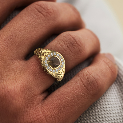 Kleiden Sie sich mit diesem breite Gold Quinten Herrenring, denn mit dem richtigen Ring geben Sie ein starkes persönliches Statement. Dieser Quinten Herrenring wird hier in 14 Karat Gold gezeigt. Wenn das nicht Ihrem Stil entspricht, können Sie das Edelmetall ganz nach Ihren Wünschen gestalten. Schließlich möchten Sie einen Herrenring, der zu Ihrem Stil passt. Ein Ring, der wirklich zu Ihnen passt. Einen, der sagt: Das bin ich!Sobald Sie Ihren Quinten Herrenring mit unserem Online-Tool fertiggestellt haben, beginnen unsere Goldschmiede mit der kreativen Anfertigung Ihres Ringes. Dieser wird mit Leidenschaft und Sorgfalt nach alter Handwerkskunst gefertigt. Darüber hinaus sind unsere Edelsteine ehrlich gewonnen. Einfach online mit unserem Online-Tool anpassen, wenn Sie Änderungen wünschen. Wenn Sie spezielle Änderungen an Ihrem Quinten Herrenring vornehmen möchten, die in unserem Online-Tool nicht verfügbar sind, wenden Sie sich bitte an unsere Experten.