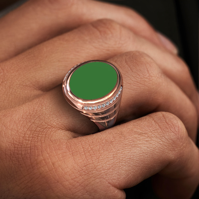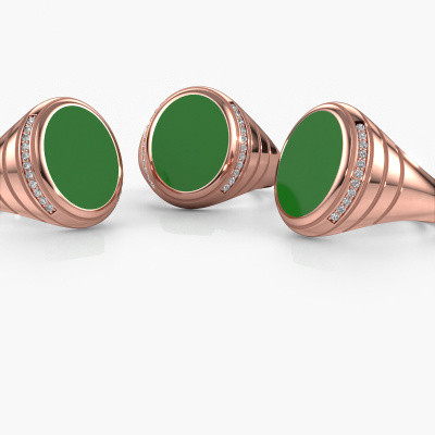 Der massive Luuk Siegelring mit 15x12 mm oval form grüner Emaille Oberfläche, wie oben gezeigt, ist voll von Tradition. Üblicherweise wurde der Siegelring vom Vater an den Sohn weitergegeben. Beginnen Sie Ihre eigene Tradition mit diesem massive, Roségold Siegelring. Wir würden uns auch sehr freuen, Ihren Ring mit einem Monogramm oder einem Familienwappen gravieren zu dürfen. Bitte sehen Sie sich unsere Datenbank für weitere Anfragen und Optionen an. Sie können die Datenbank am unteren Rand dieser Seite finden. Beginnen Sie eine neue Tradition mit dem einzigartige Roségold Luuk Siegelring. Wie gefällt Ihnen dieser einzigartige Roségold Siegelring? Passen Sie diesen Luuk Siegelring einfach mit unserem Online-Tool an. Anschließend wird Ihr persönlicher, besondere Luuk Siegelring in Handarbeit von unseren Goldschmieden angefertigt. Edelmetalle und Edelsteine können nach Ihren Wünschen angepasst werden. Haben Sie spezielle Wünsche, die in unserem Online-Tool nicht verfügbar sind? Setzen Sie sich mit uns in Verbindung. Wir passen Ihren persönlichen einzigartige Siegelring nach Ihren Wünschen an.Unsere Online-Kollektion wird täglich um neue Schmuckdesigns ergänzt. Unser Team von leidenschaftlichen Designern ist bemüht, außergewöhnliche und vielfältige Designs zu kreieren. Haben Sie einen Ring gesehen, der Ihnen gefällt? Setzen Sie sich mit uns in Verbindung. Basierend auf einem guten Preis/Leistungsverhältnis machen wir Ihnen ein Angebot, das Sie nicht ablehnen können!Durch die Kombination modernster Technik mit uralter Handwerkskunst können wir alle Ringe in unserem eigenen Studio anfertigen. Jedes Schmuckstück wird auf Anfrage gefertigt. Das ist vorteilhaft, weil wir Ihnen dadurch einen Preis anbieten können, den Sie nirgendwo anders finden.Um es einfacher zu machen, bieten wir eine kostenlose 30-tägige Rücksendung.