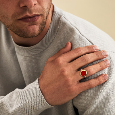 Der ovale Jake 2 Siegelring mit 12x10 mm oval form Karneol Oberfläche, wie oben gezeigt, ist voll von Tradition. Üblicherweise wurde der Siegelring vom Vater an den Sohn weitergegeben. Beginnen Sie Ihre eigene Tradition mit diesem ovale, Roségold Siegelring. Wir würden uns auch sehr freuen, Ihren Ring mit einem Monogramm oder einem Familienwappen gravieren zu dürfen. Bitte sehen Sie sich unsere Datenbank für weitere Anfragen und Optionen an. Sie können die Datenbank am unteren Rand dieser Seite finden. Beginnen Sie eine neue Tradition mit dem traditionell Roségold Jake 2 Siegelring. Sobald Sie Ihren Jake 2 Siegelring mit unserem Online-Tool fertiggestellt haben, beginnen unsere Goldschmiede mit der kreativen Anfertigung Ihres Ringes. Dieser wird mit Leidenschaft und Sorgfalt nach alter Handwerkskunst gefertigt. Darüber hinaus sind unsere Edelsteine ehrlich gewonnen. Einfach online mit unserem Online-Tool anpassen, wenn Sie Änderungen wünschen. Wenn Sie spezielle Änderungen an Ihrem Jake 2 Siegelring vornehmen möchten, die in unserem Online-Tool nicht verfügbar sind, wenden Sie sich bitte an unsere Experten.Unsere Online-Kollektion wird täglich um neue Schmuckdesigns ergänzt. Unser Team von leidenschaftlichen Designern ist bemüht, außergewöhnliche und vielfältige Designs zu kreieren. Haben Sie einen Ring gesehen, der Ihnen gefällt? Setzen Sie sich mit uns in Verbindung. Basierend auf einem guten Preis/Leistungsverhältnis machen wir Ihnen ein Angebot, das Sie nicht ablehnen können!Haben Sie ein bestimmtes Budget? Sie können uns gerne kontaktieren, damit wir Ihre Optionen besprechen können. Wir bieten unsere Ringe zum garantiert besten Preis, denn wir fertigen sie auf Bestellung. Solche Preise finden Sie nirgendwo anders!Um es einfacher zu machen, bieten wir eine kostenlose 30-tägige Rücksendung.