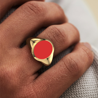 Der massive Herman 3 Siegelring mit 13x11 mm oval form Rot Emaille Oberfläche, wie oben gezeigt, ist voll von Tradition. Üblicherweise wurde der Siegelring vom Vater an den Sohn weitergegeben. Beginnen Sie Ihre eigene Tradition mit diesem massive, Gold Siegelring. Wir würden uns auch sehr freuen, Ihren Ring mit einem Monogramm oder einem Familienwappen gravieren zu dürfen. Bitte sehen Sie sich unsere Datenbank für weitere Anfragen und Optionen an. Sie können die Datenbank am unteren Rand dieser Seite finden. Beginnen Sie eine neue Tradition mit dem klassische Gold Herman 3 Siegelring. Sobald Sie Ihren Herman 3 Siegelring mit unserem Online-Tool fertiggestellt haben, beginnen unsere Goldschmiede mit der kreativen Anfertigung Ihres Ringes. Dieser wird mit Leidenschaft und Sorgfalt nach alter Handwerkskunst gefertigt. Darüber hinaus sind unsere Edelsteine ehrlich gewonnen. Einfach online mit unserem Online-Tool anpassen, wenn Sie Änderungen wünschen. Wenn Sie spezielle Änderungen an Ihrem Herman 3 Siegelring vornehmen möchten, die in unserem Online-Tool nicht verfügbar sind, wenden Sie sich bitte an unsere Experten.Unser Team von talentierten, leidenschaftlichen Designern fügt unserer Online-Kollektion täglich neue Ringe-Designs hinzu. Unser Ziel dabei ist es, Ihnen eine große Vielfalt an Schmuckstücken anbieten zu können. Bitte zögern Sie nicht, ein Angebot anzufordern, wenn Sie spezielle Wünsche für Ihren Ring haben. Wir garantieren Ihnen ein Angebot, das Sie nicht ablehnen können.Mit unserer modernen Technik können wir Schmuckstücke von höchster Qualität mit größter Sorgfalt für Sie entwerfen und anpassen. Unsere Ringe sind immer um 30 Prozent günstiger als bei anderen Juwelieren. Wir fertigen Ringe auf Bestellung, also müssen wir keine großen Lager unterhalten. Wenn Sie ein bestimmtes Budget haben, beraten wir Sie gerne entsprechend.Um es einfacher zu machen, bieten wir eine kostenlose 30-tägige Rücksendung.